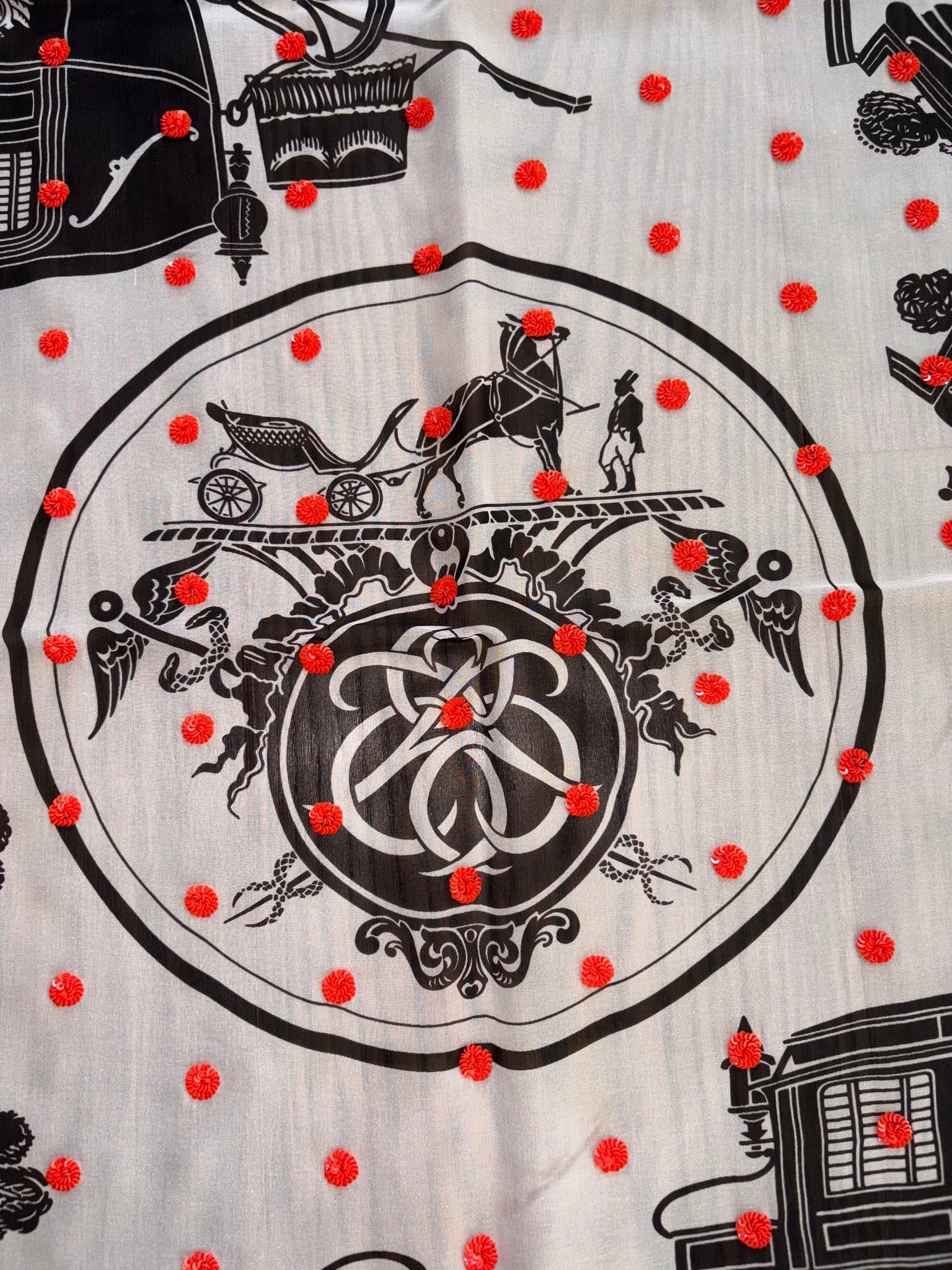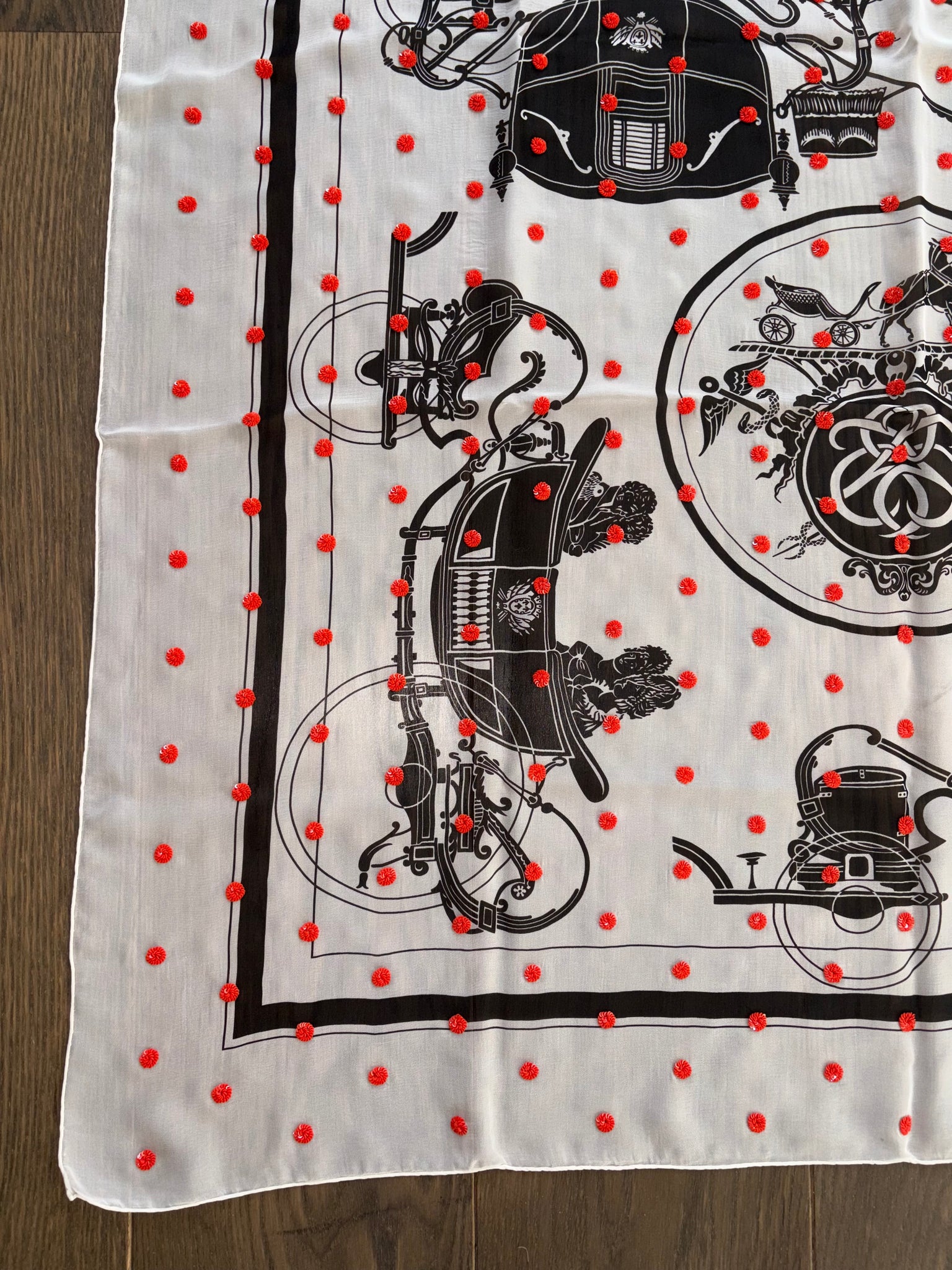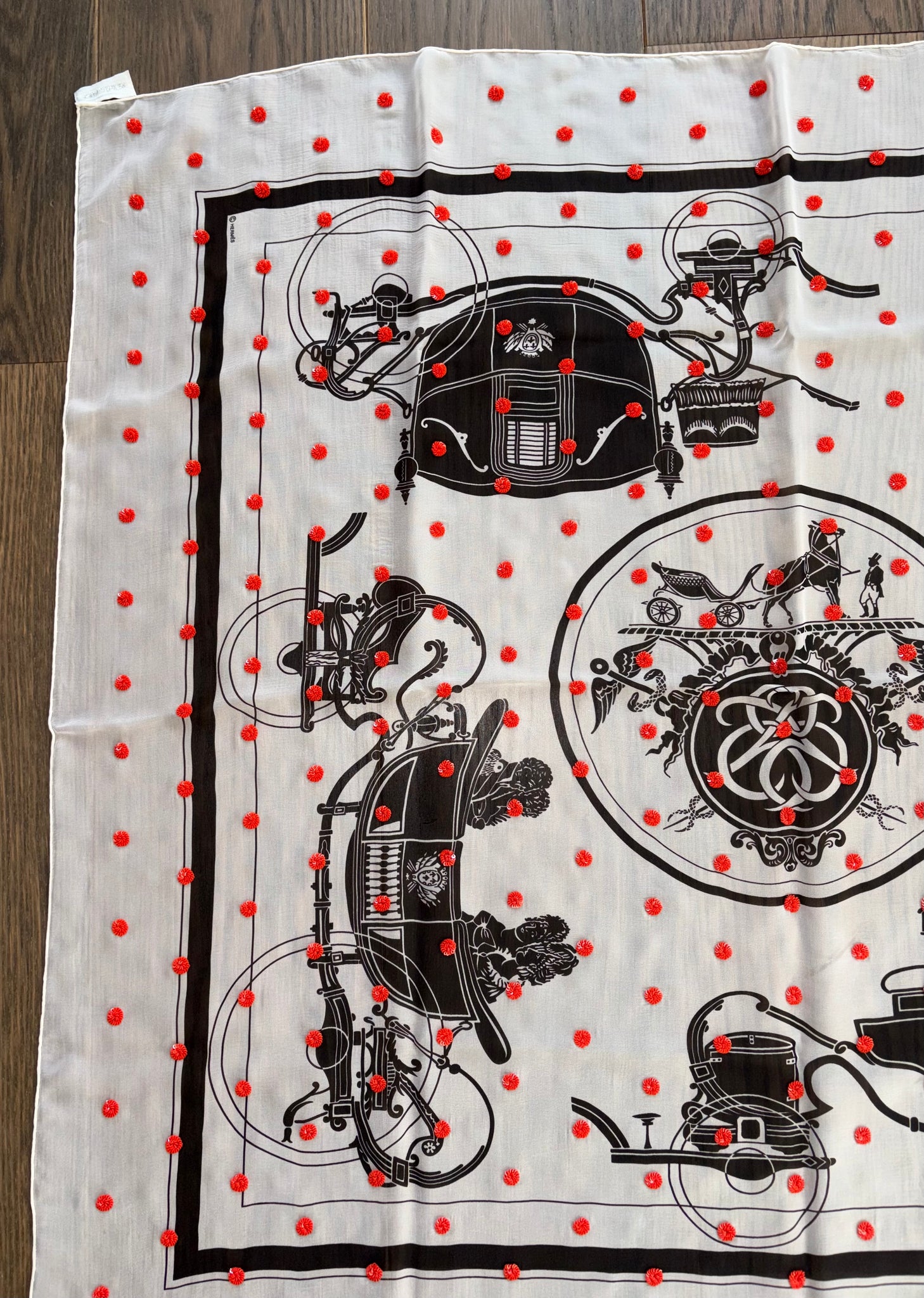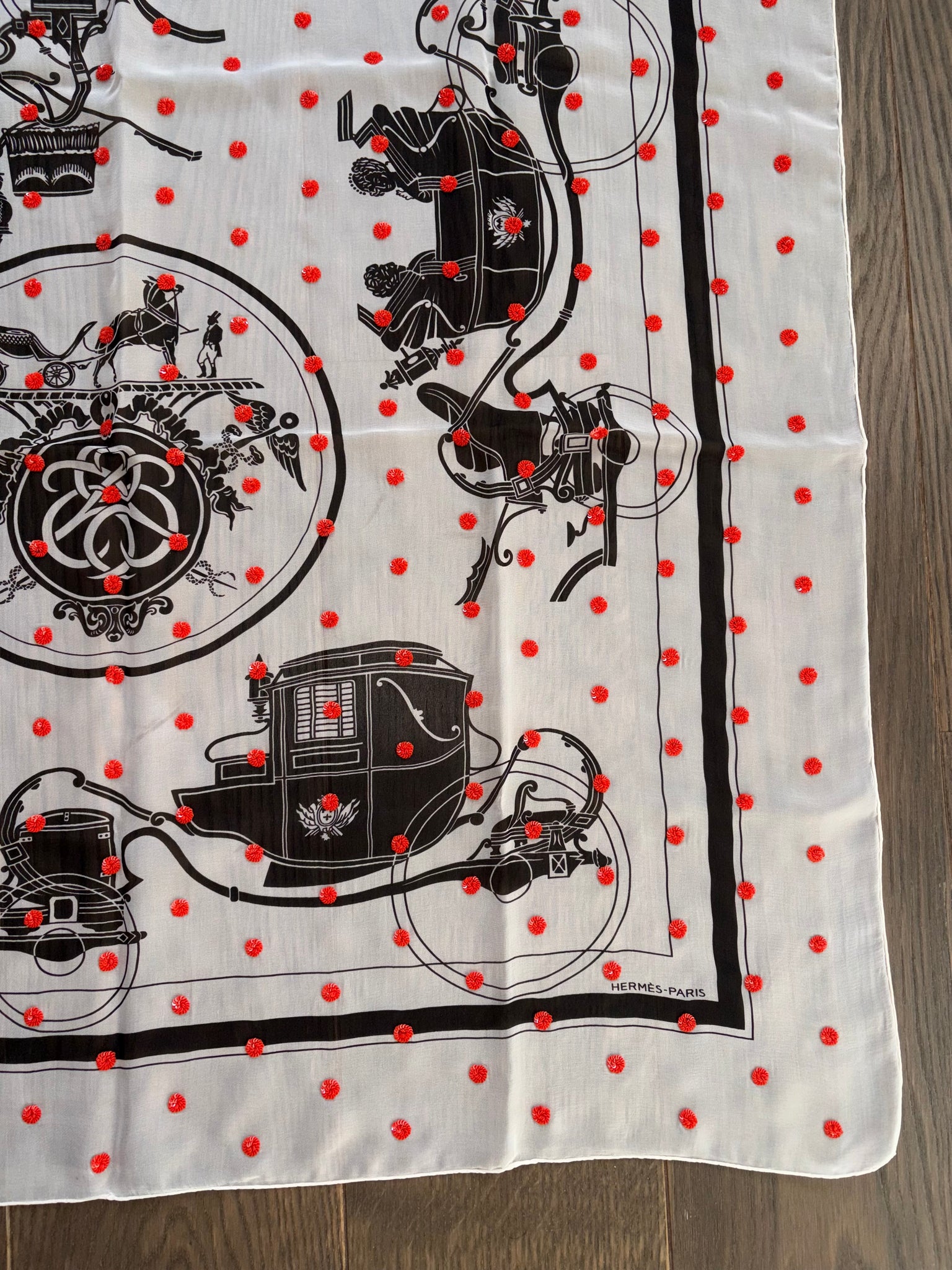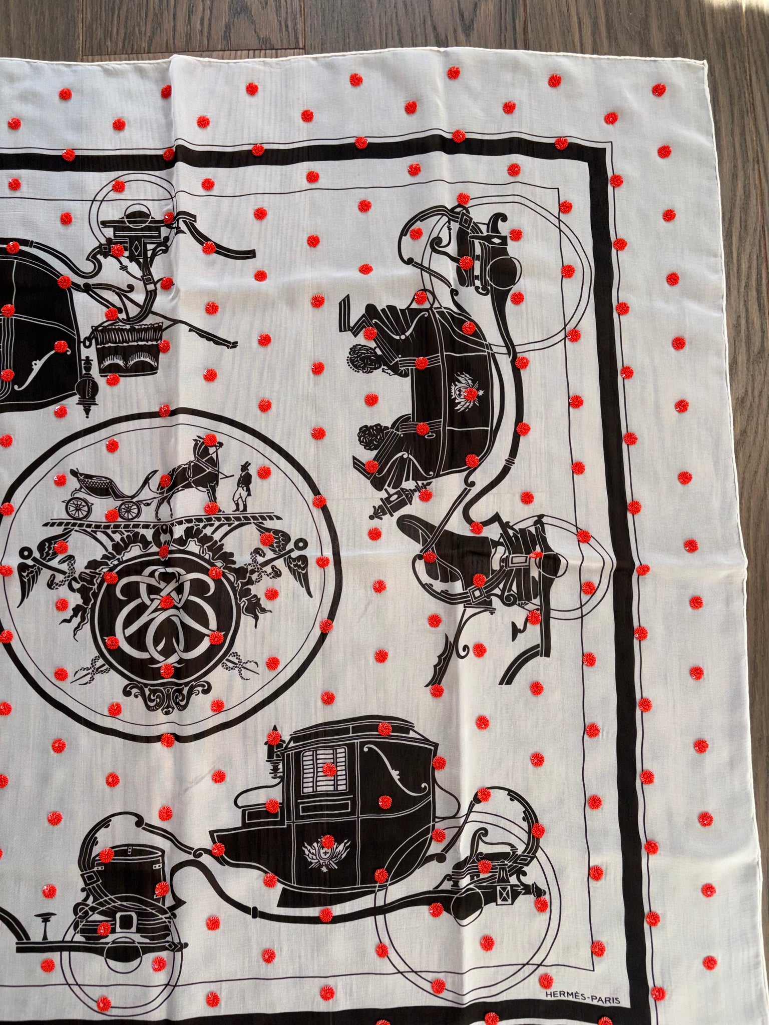 Beautiful Hermes Beaded Silk Mousseline Scarf Ex Libris Au Pois Couture by Hugo Grygkar.