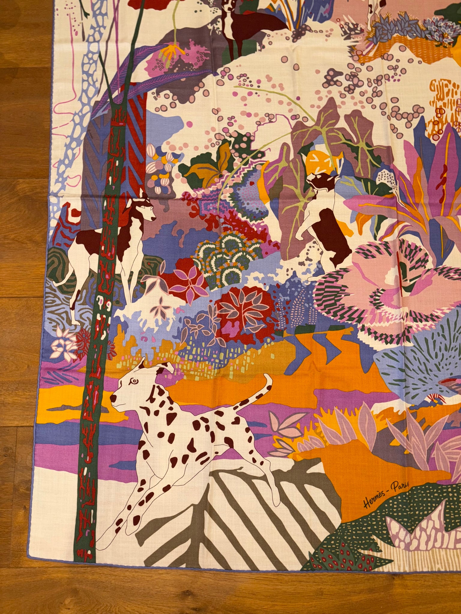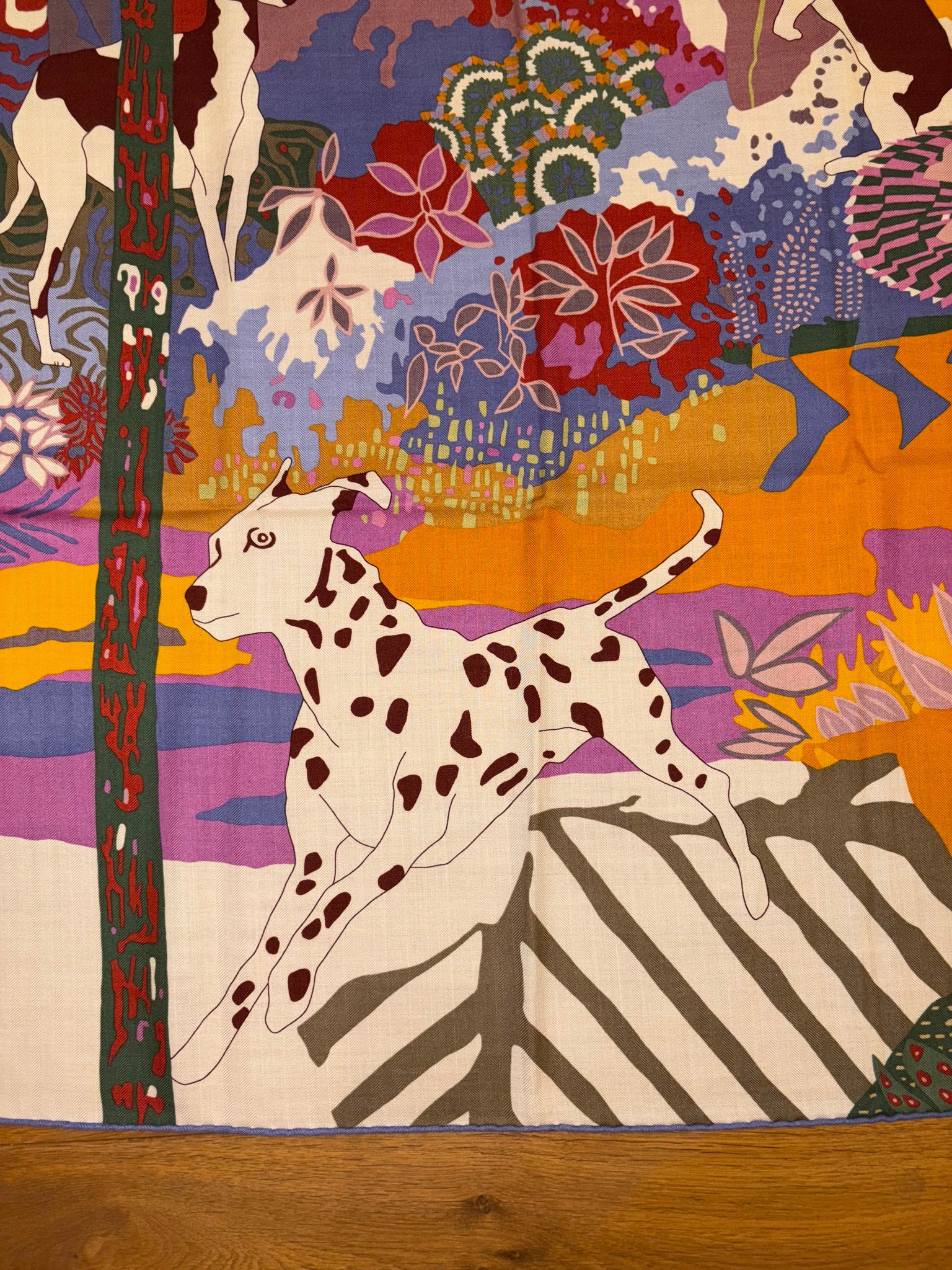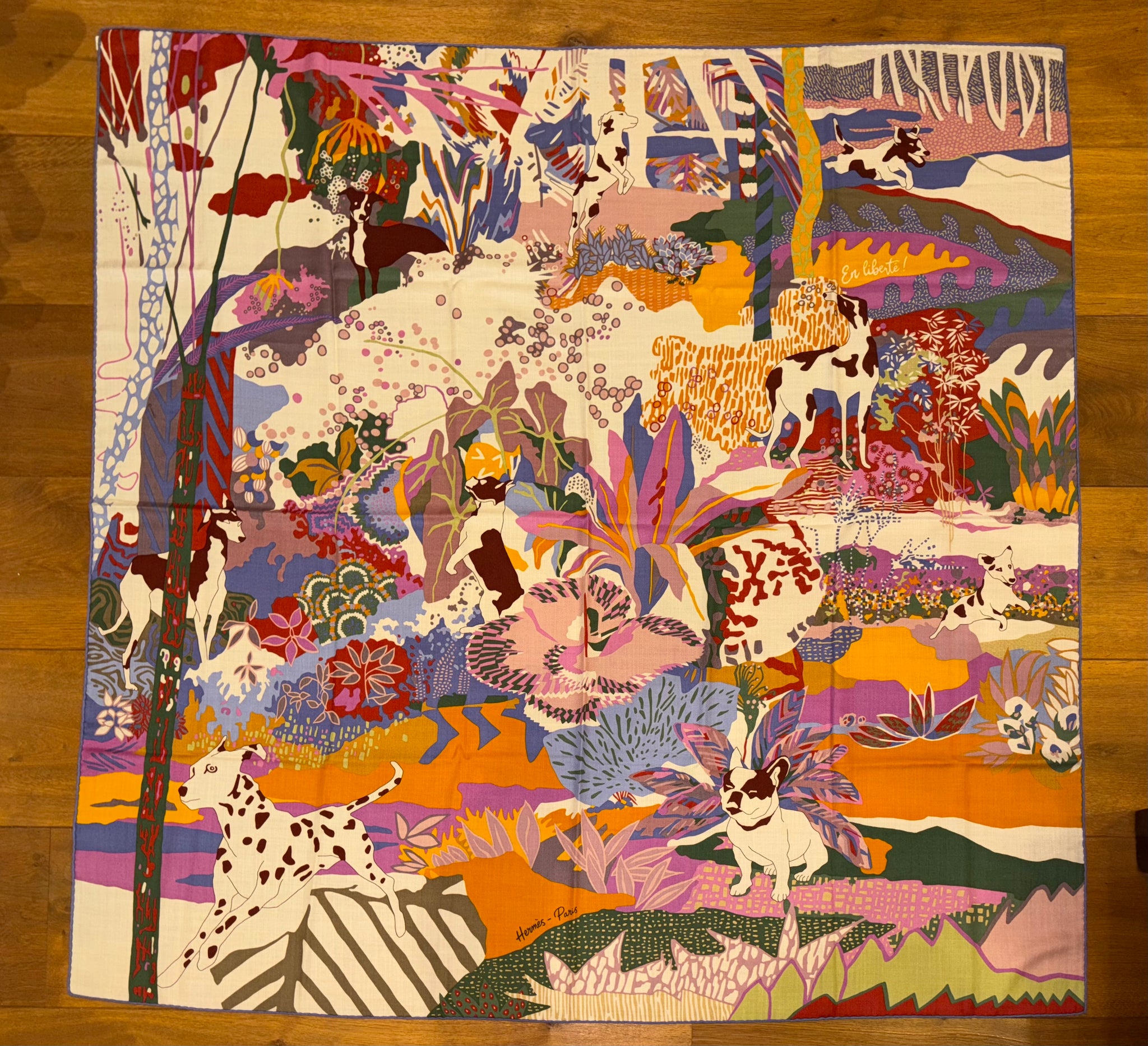 Beautiful, rare and collectible Hermes Cashmere and Silk GM Shawl «En Liberte !» by Carine Brancowitz