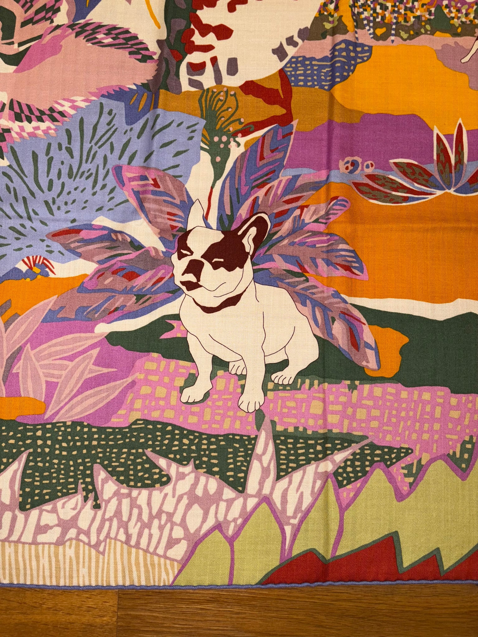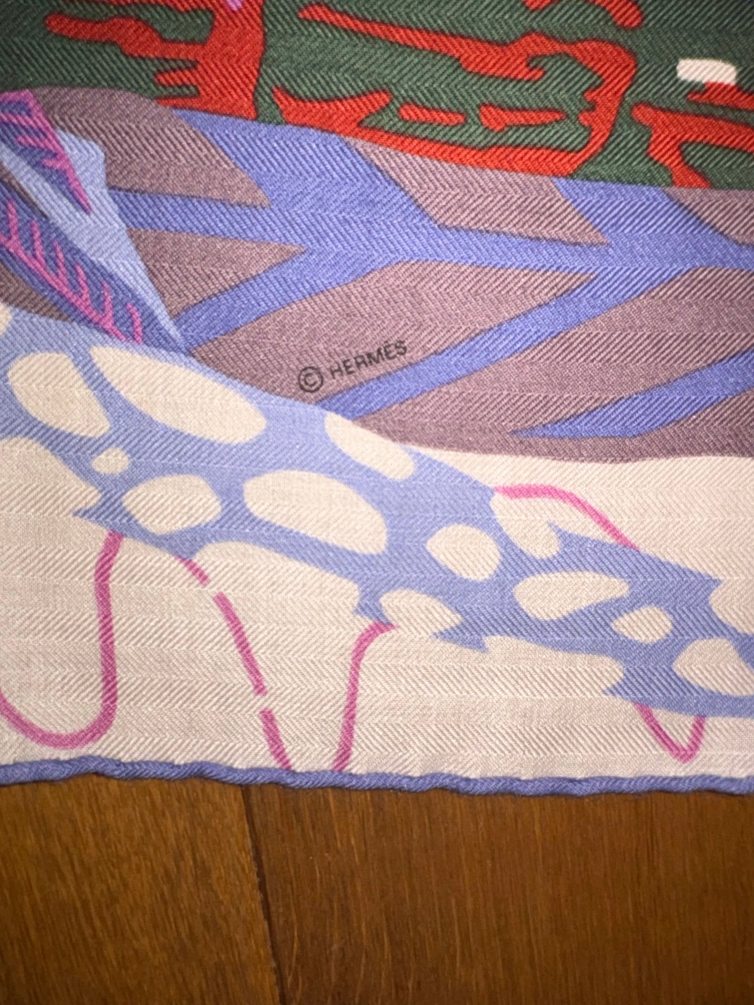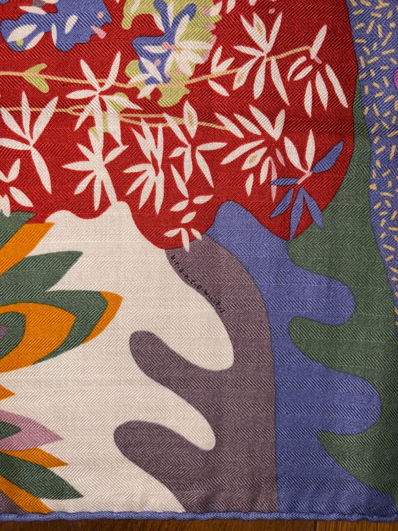Beautiful, rare and collectible Hermes Cashmere and Silk GM Shawl «En Liberte !» by Carine Brancowitz