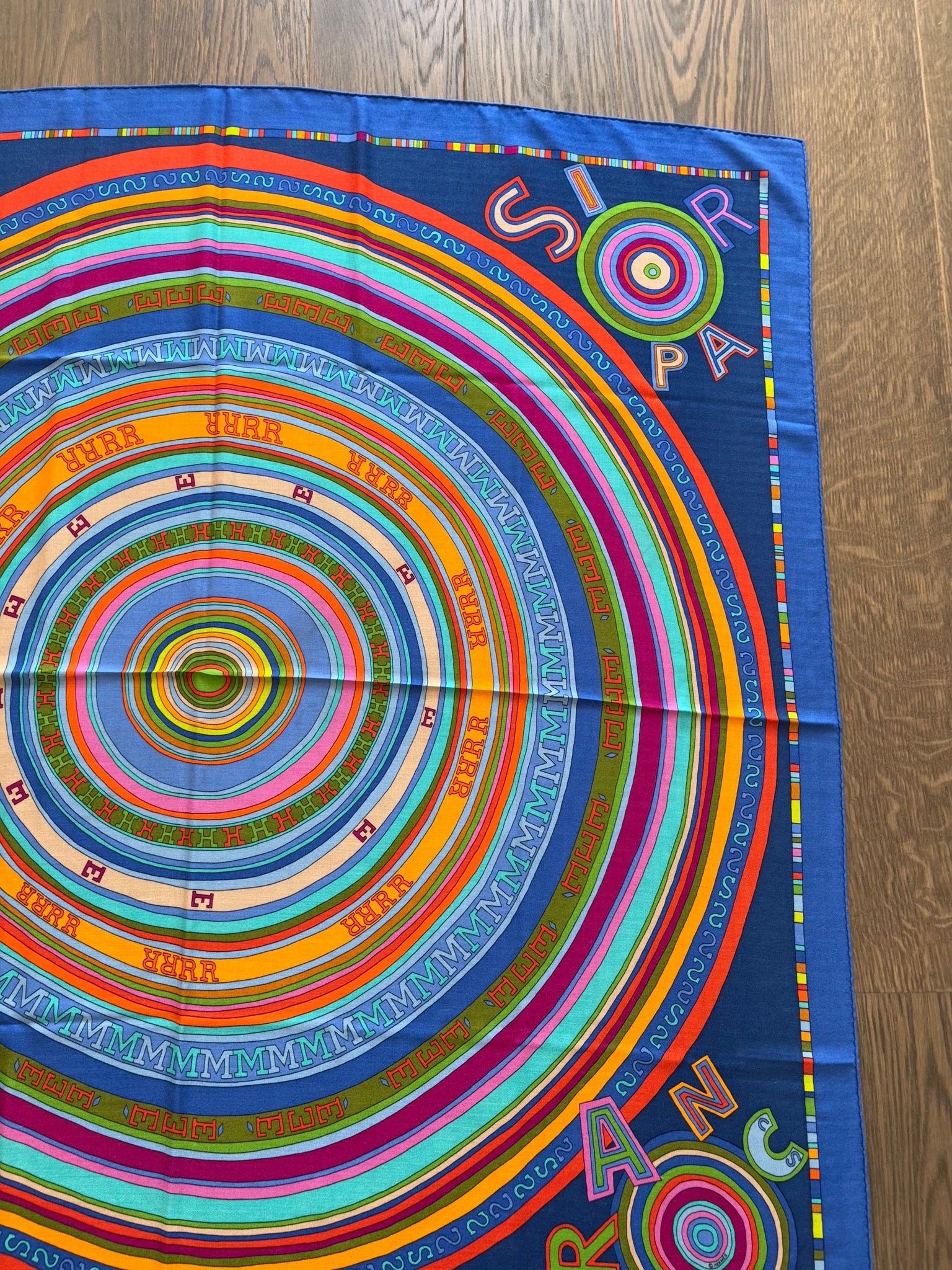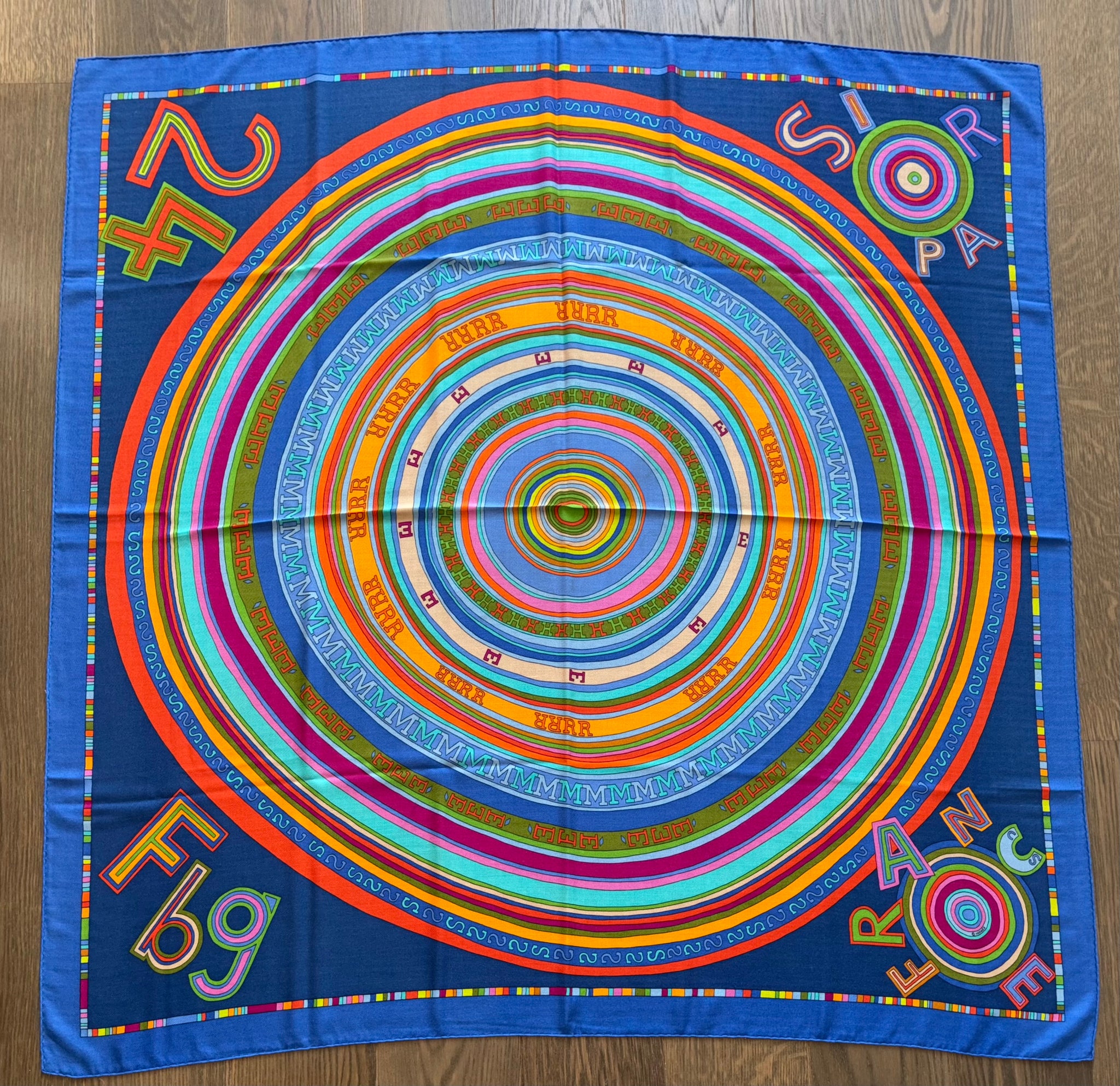 Very rare and highly collectible Hermes Cashmere and Silk GM Shawl “TOHU-BOHU” by Claudia Stuhlhofer-Mayr.