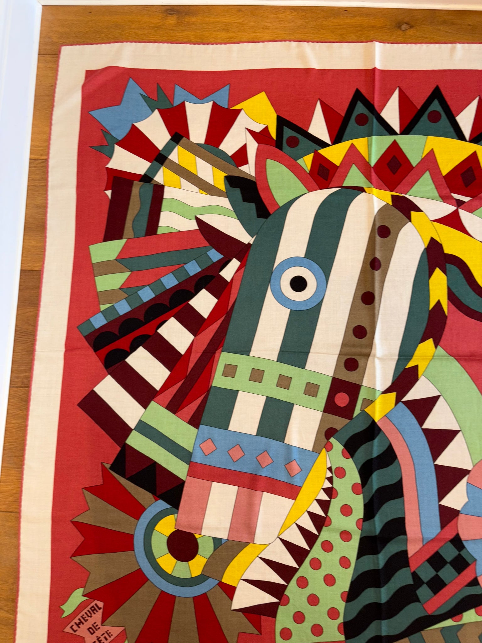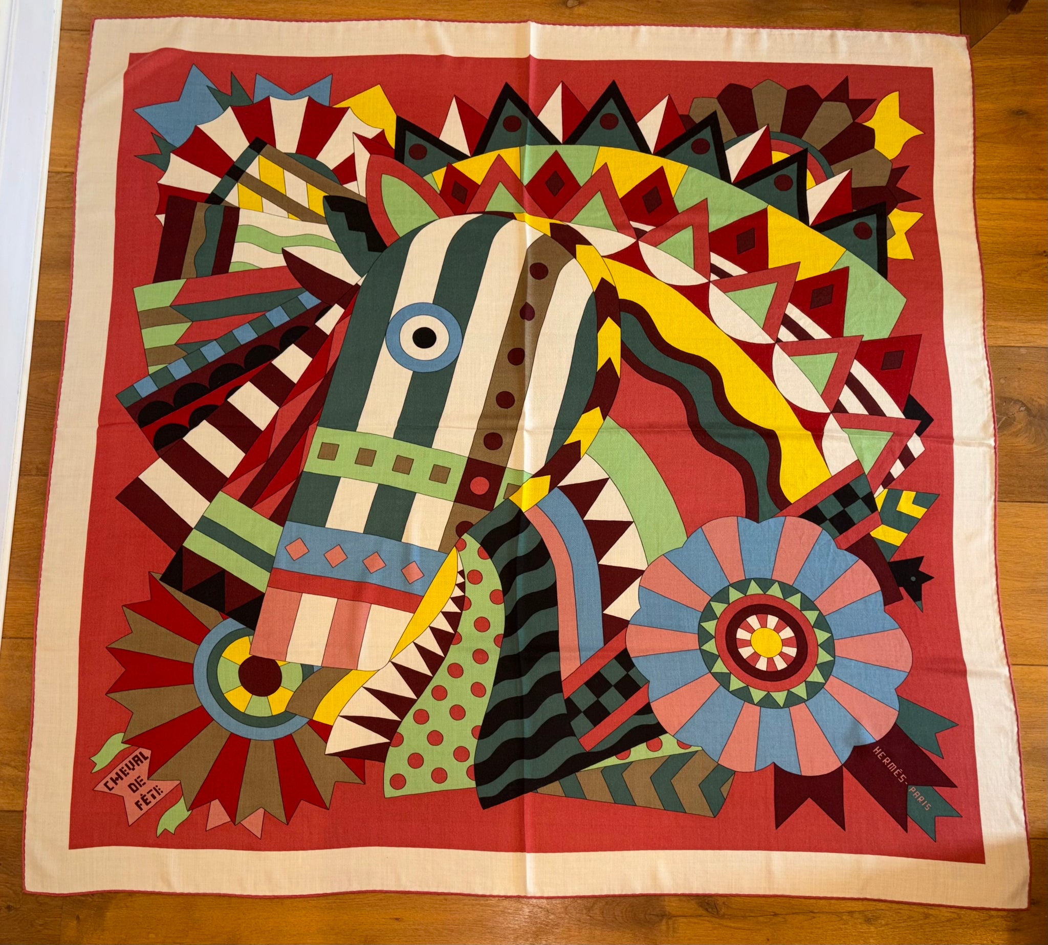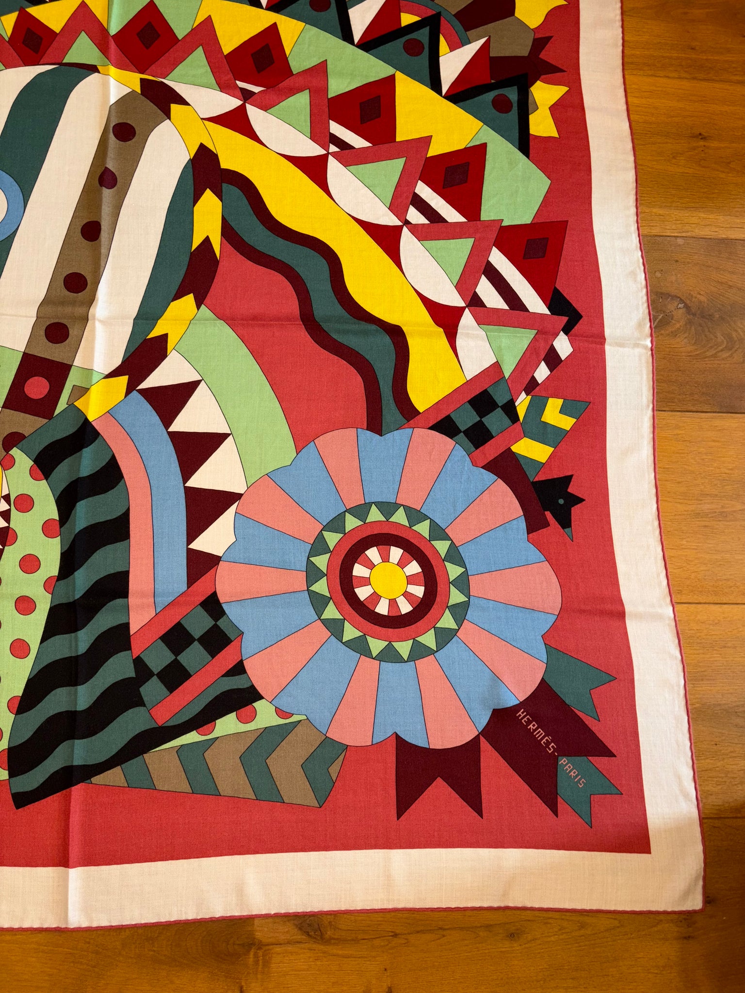 Very beautiful Hermes Cashmere/Silk GM Shawl “Cheval de Fete” by Jan Bajtlik.