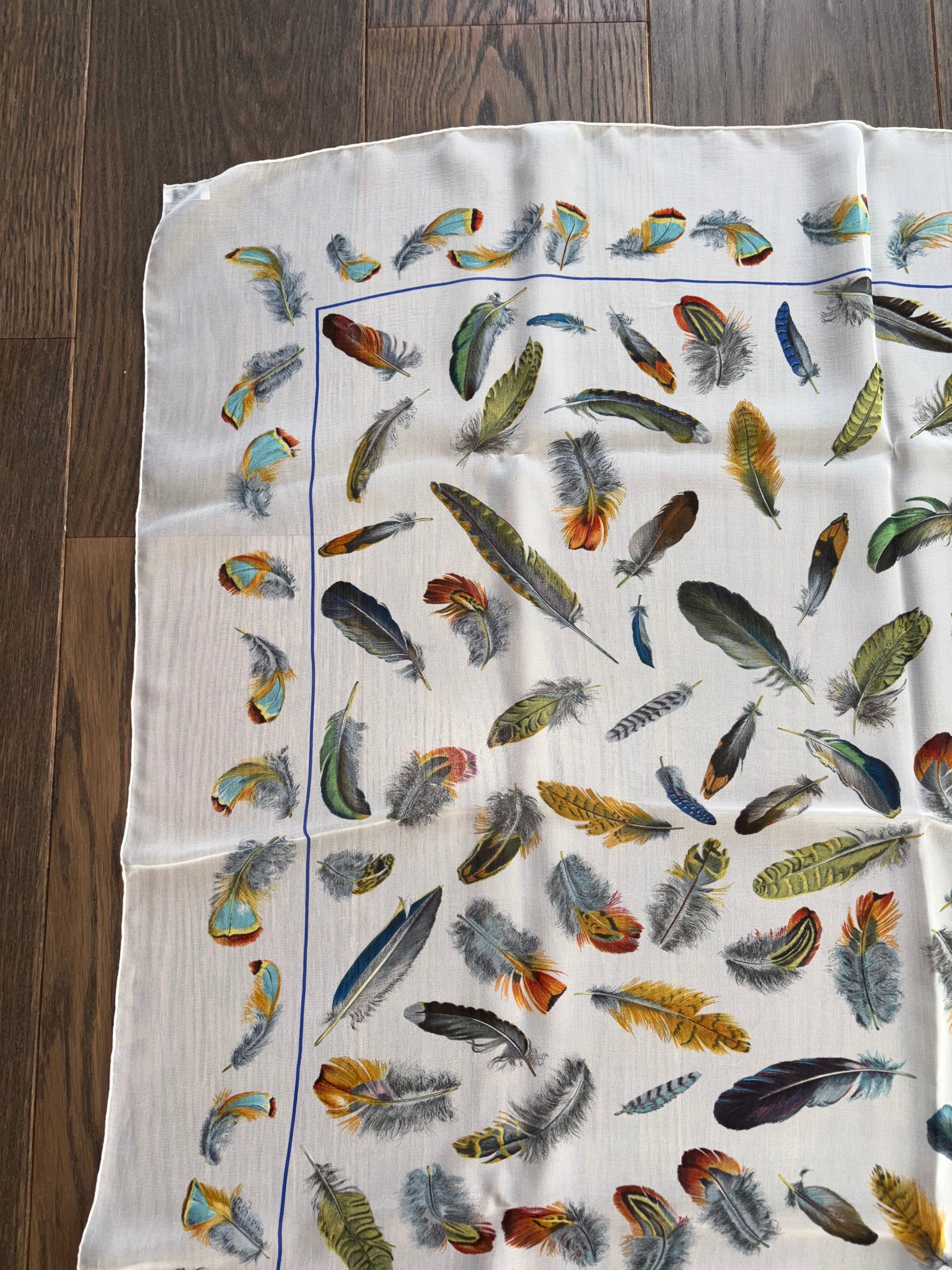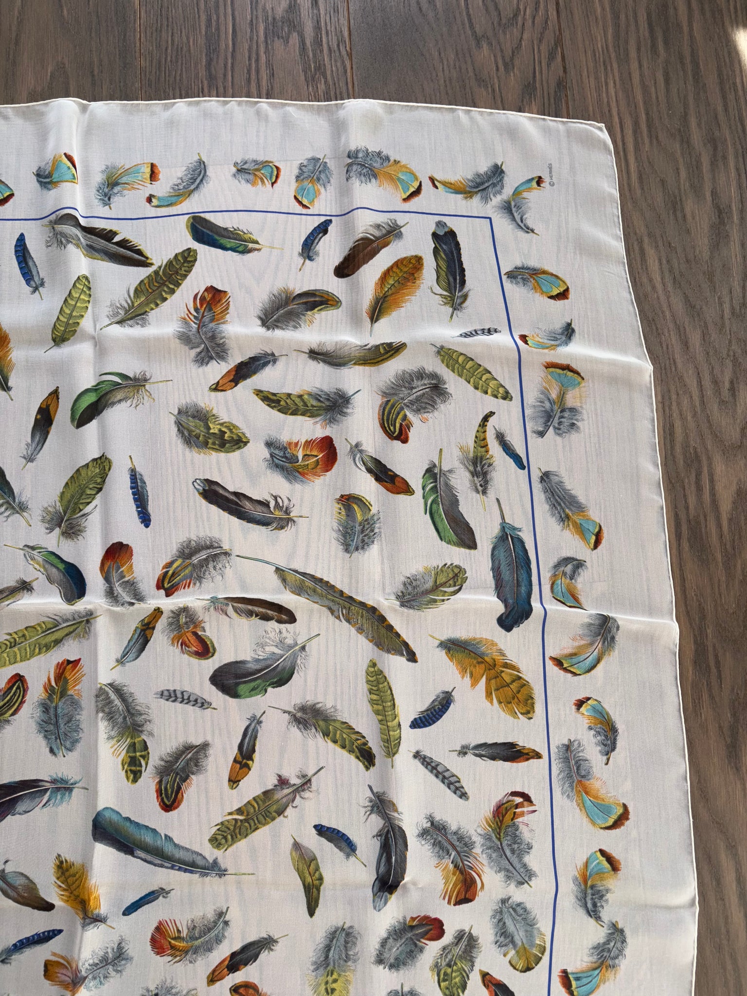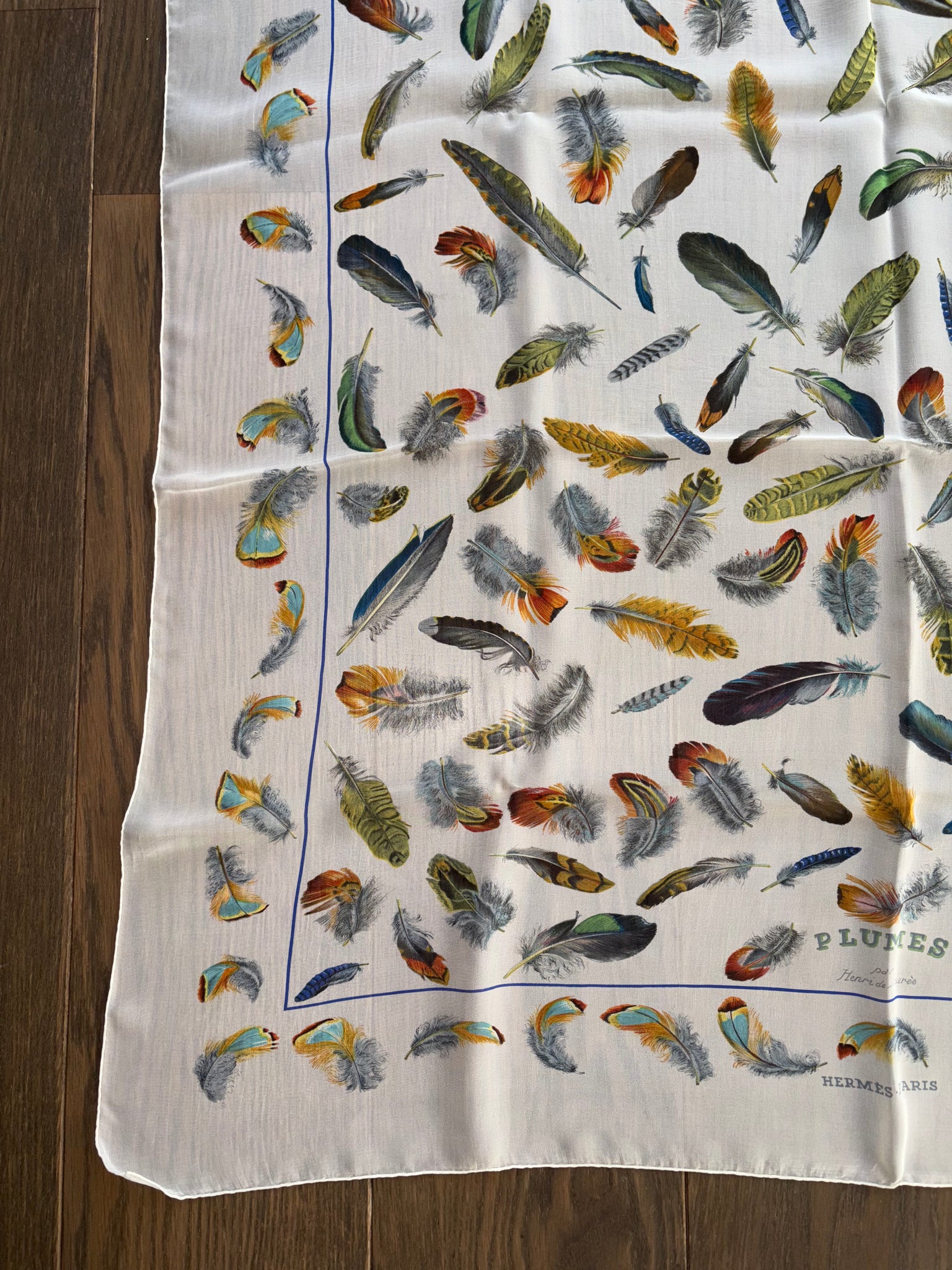 Very beautiful and rare Hermes Silk Mousseline GM Shawl “Plumes” by Henri de Linares.