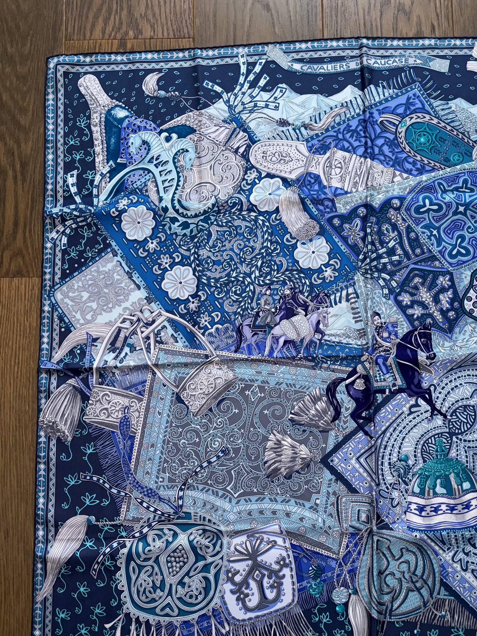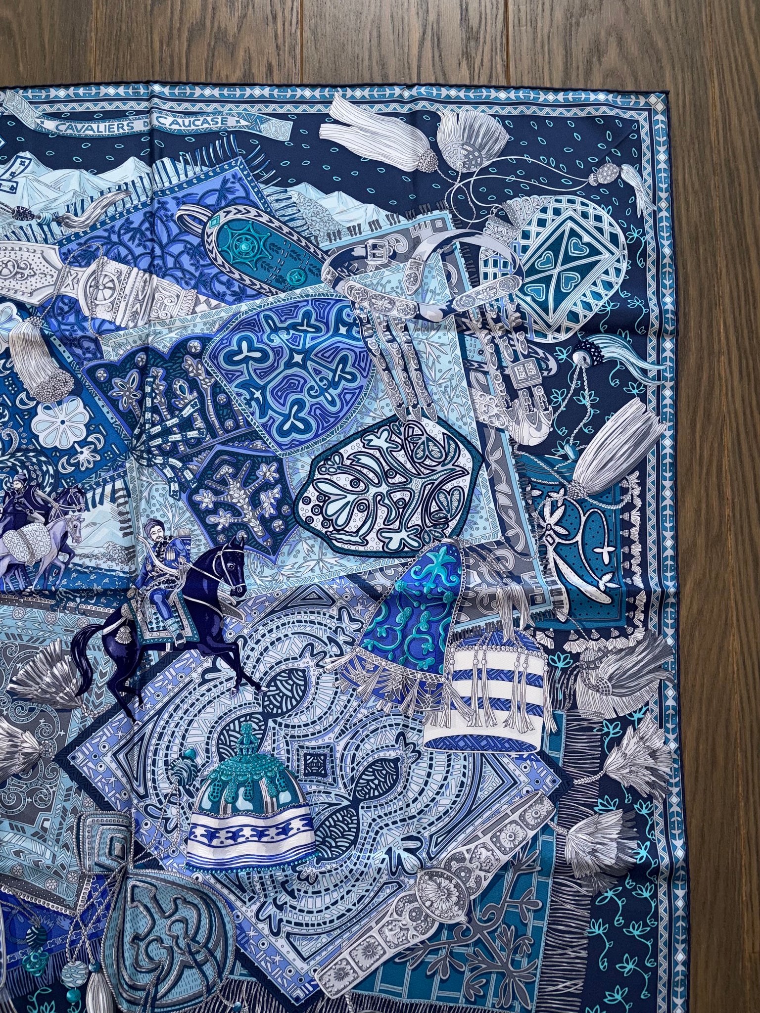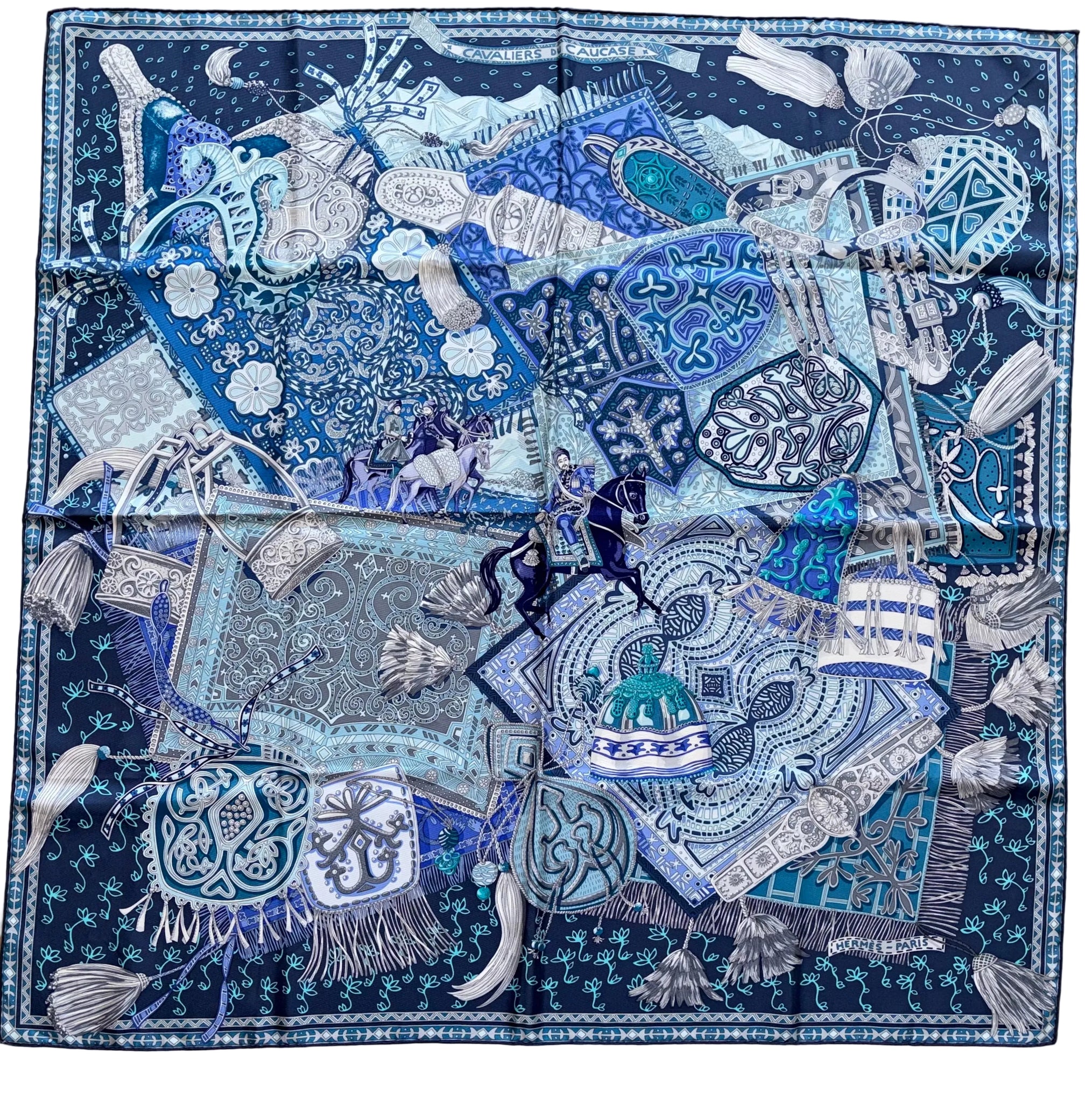 Beautiful Hermes Silk Scarf “CAVALIERS DU CAUCASE” by Annie Faivre.