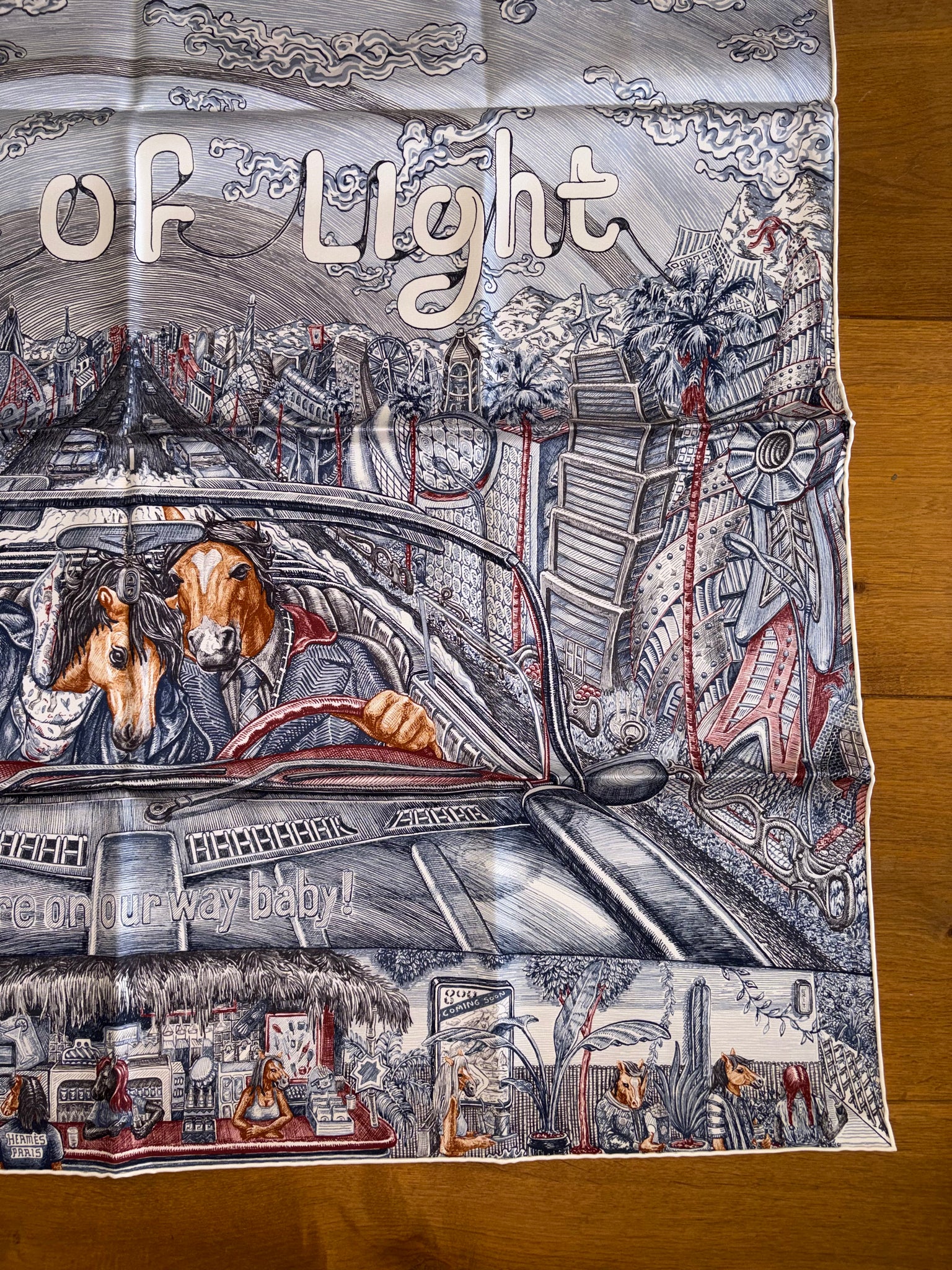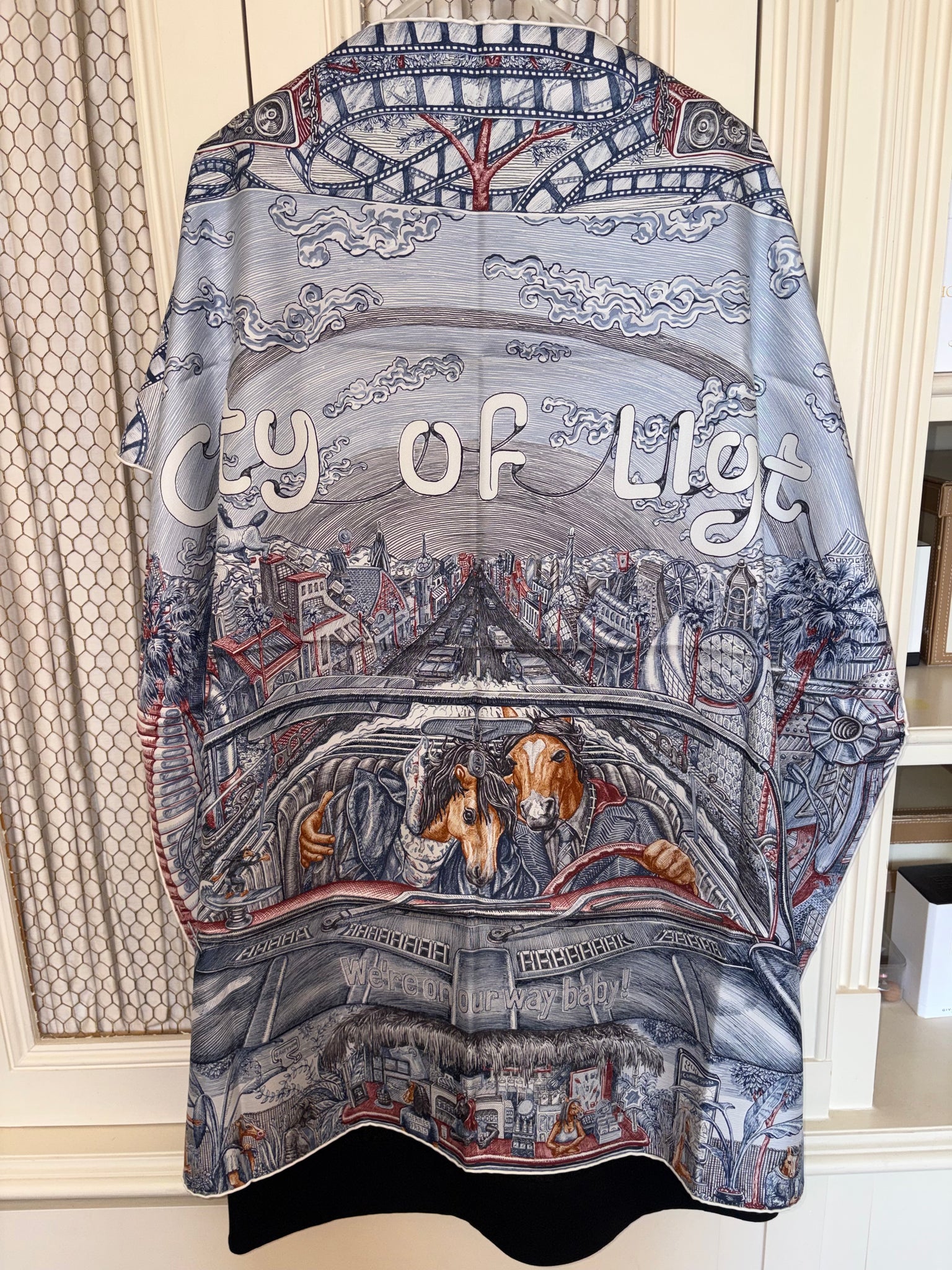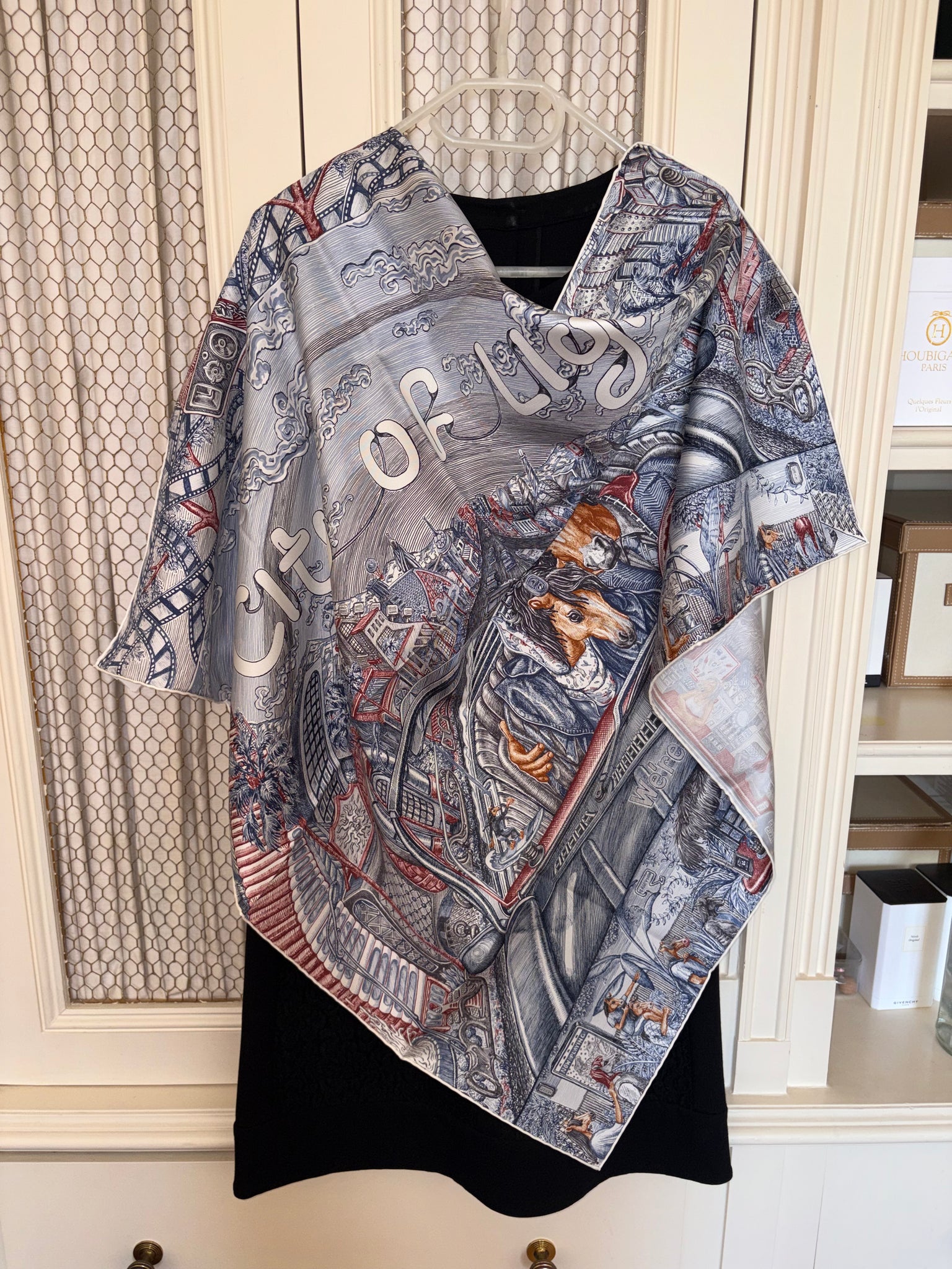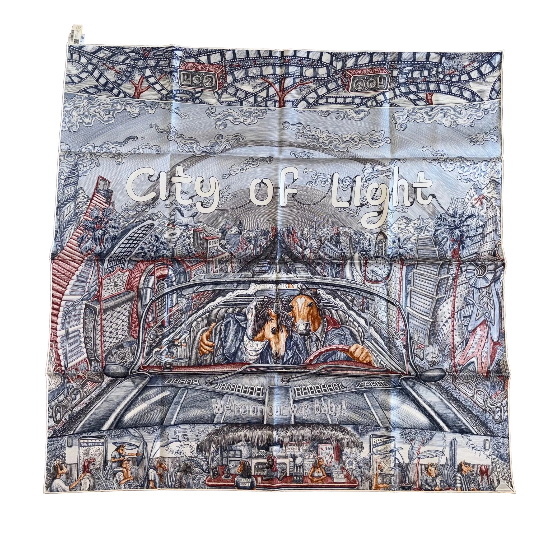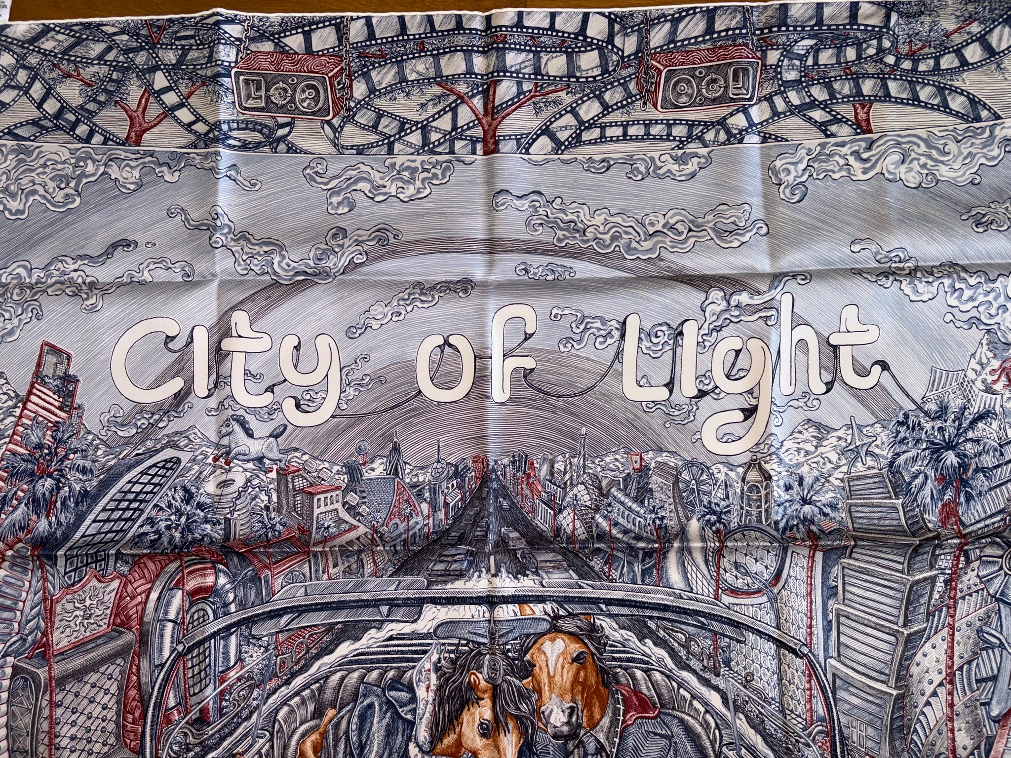 Very beautiful and sought after Hermes Silk Scarf «City of Light» designed by Elias Kafouros.