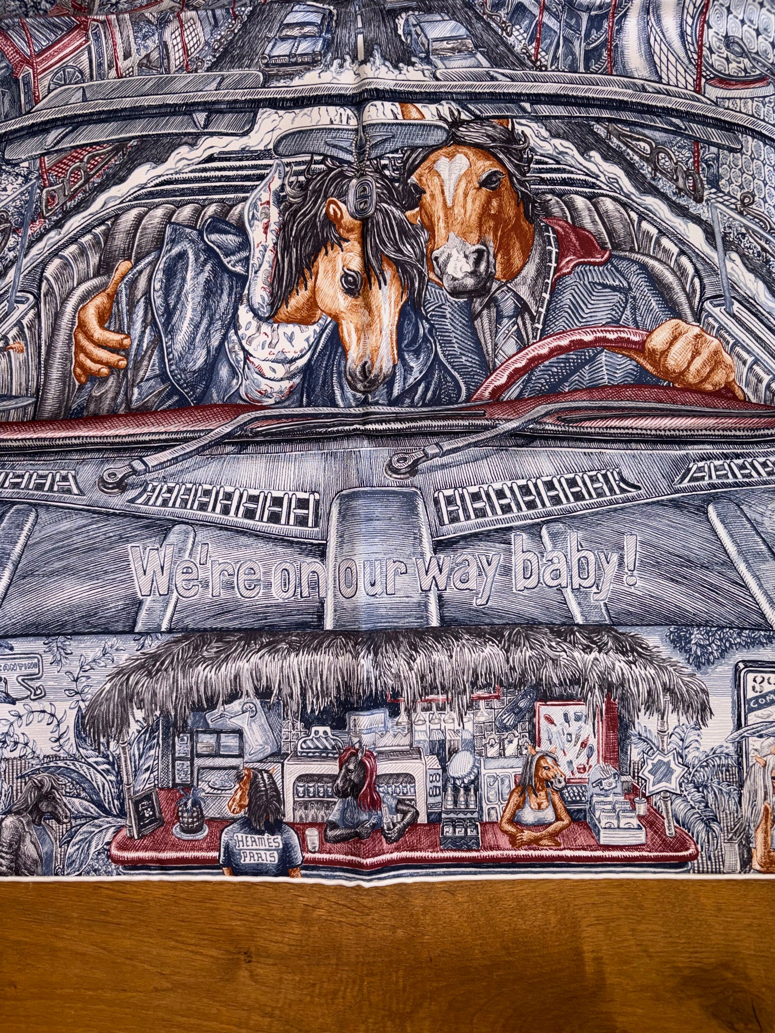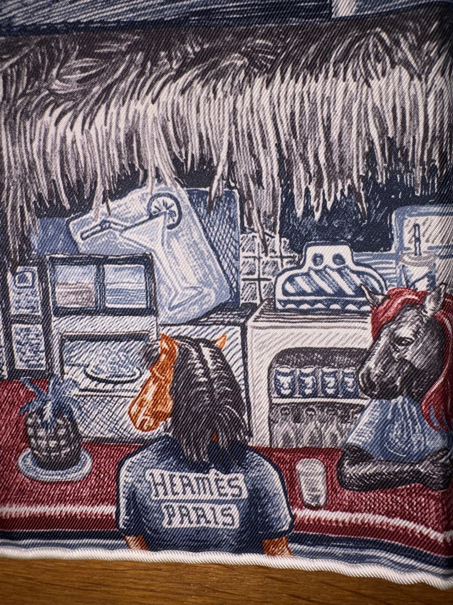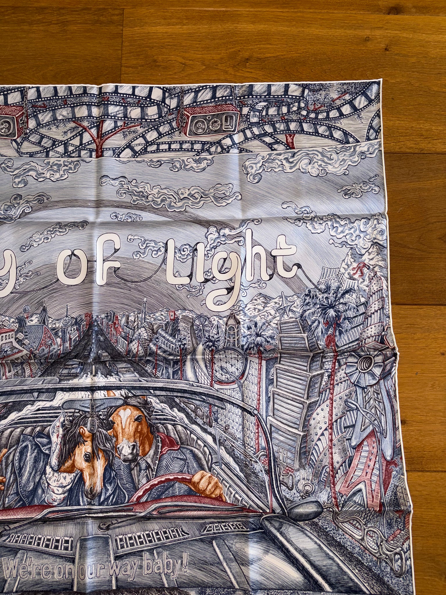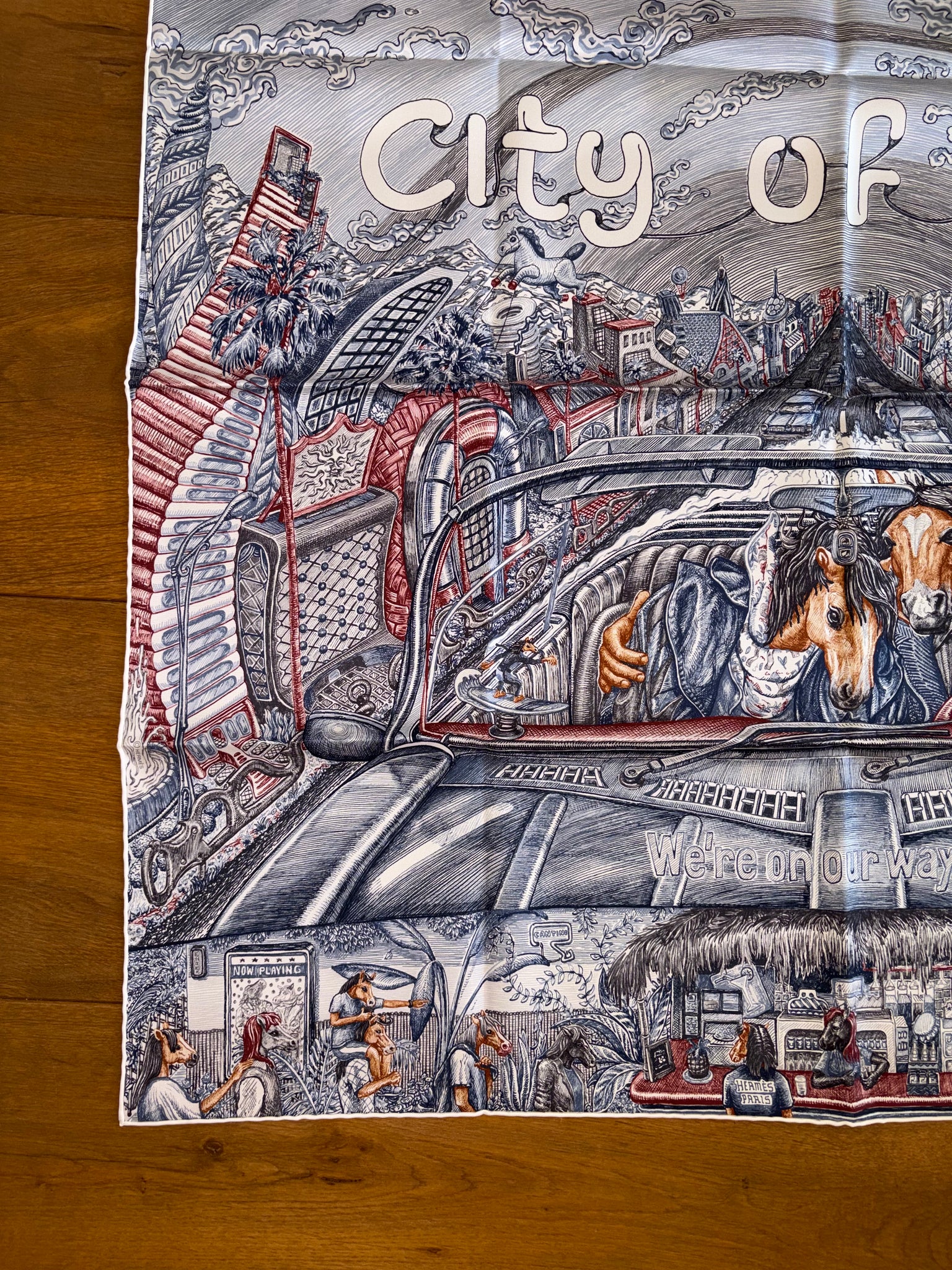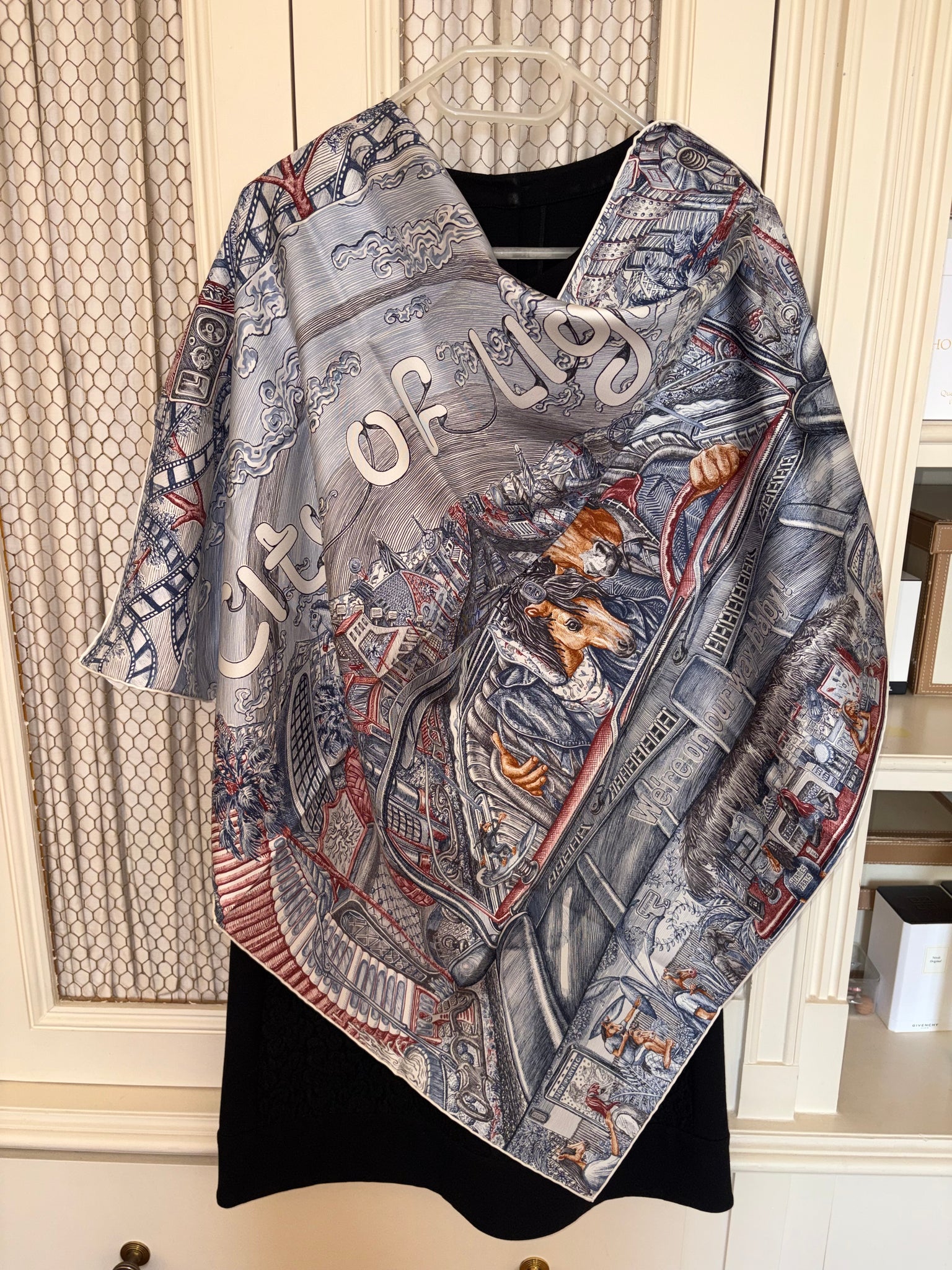 Very beautiful and sought after Hermes Silk Scarf «City of Light» designed by Elias Kafouros.