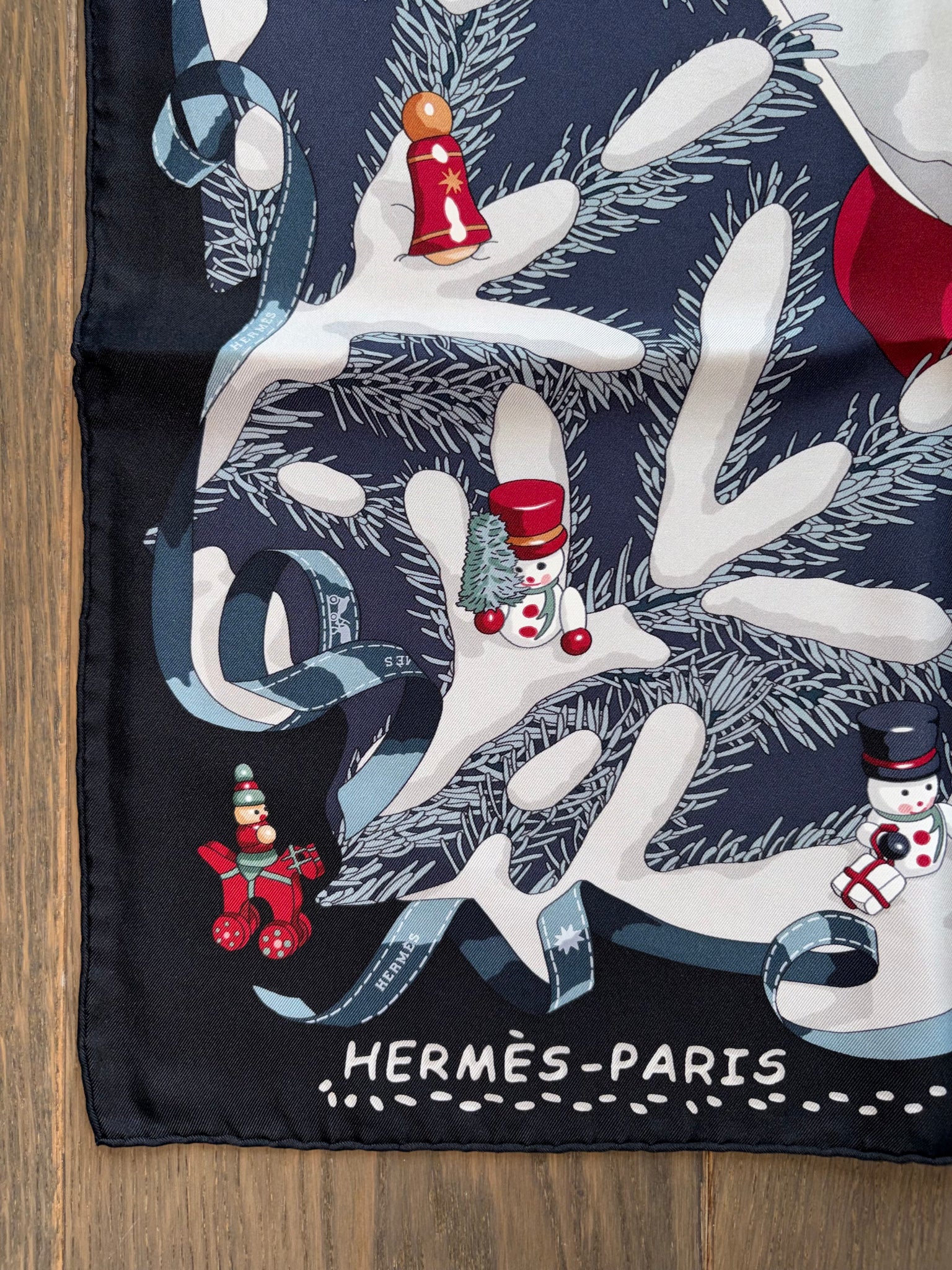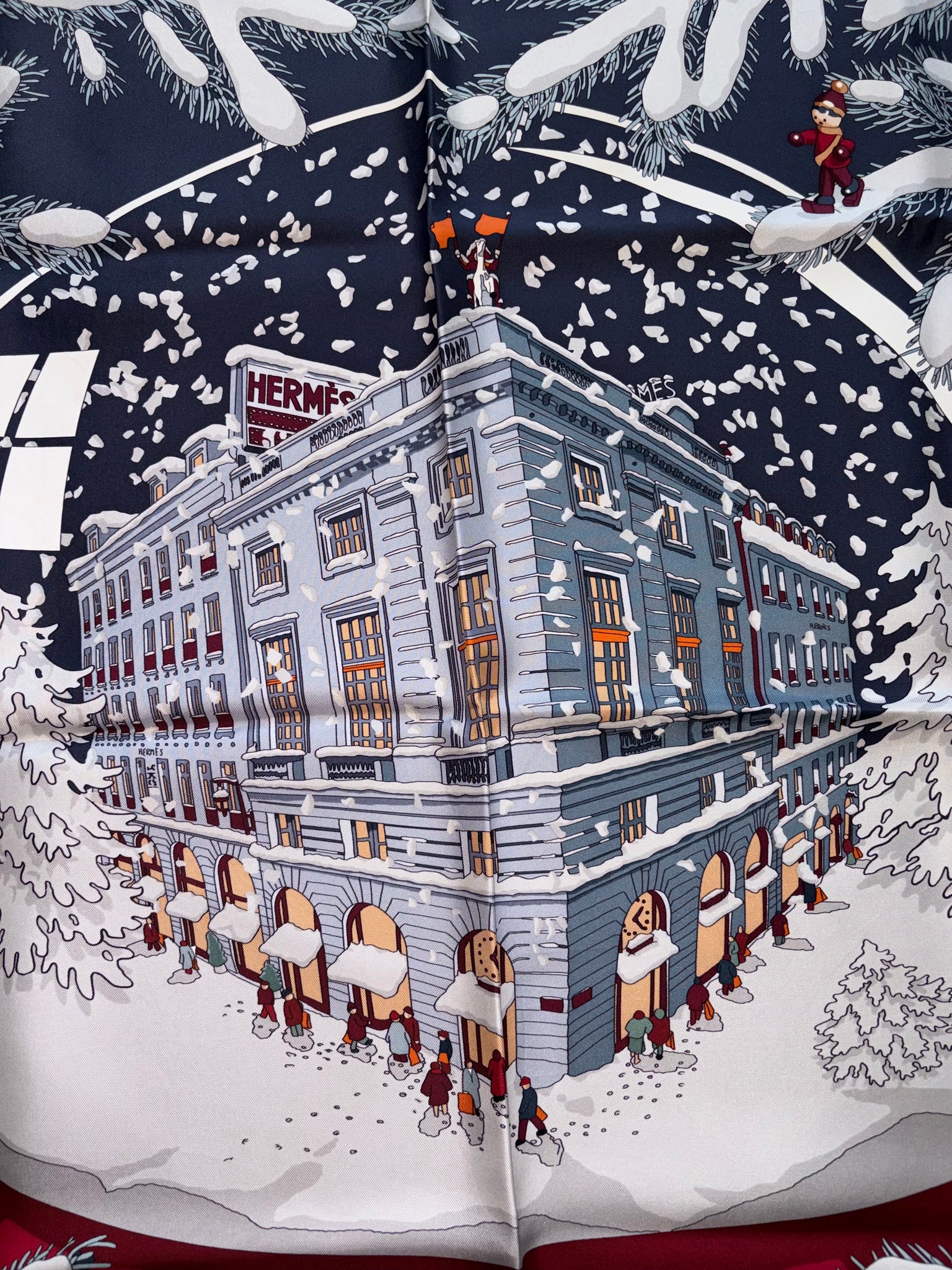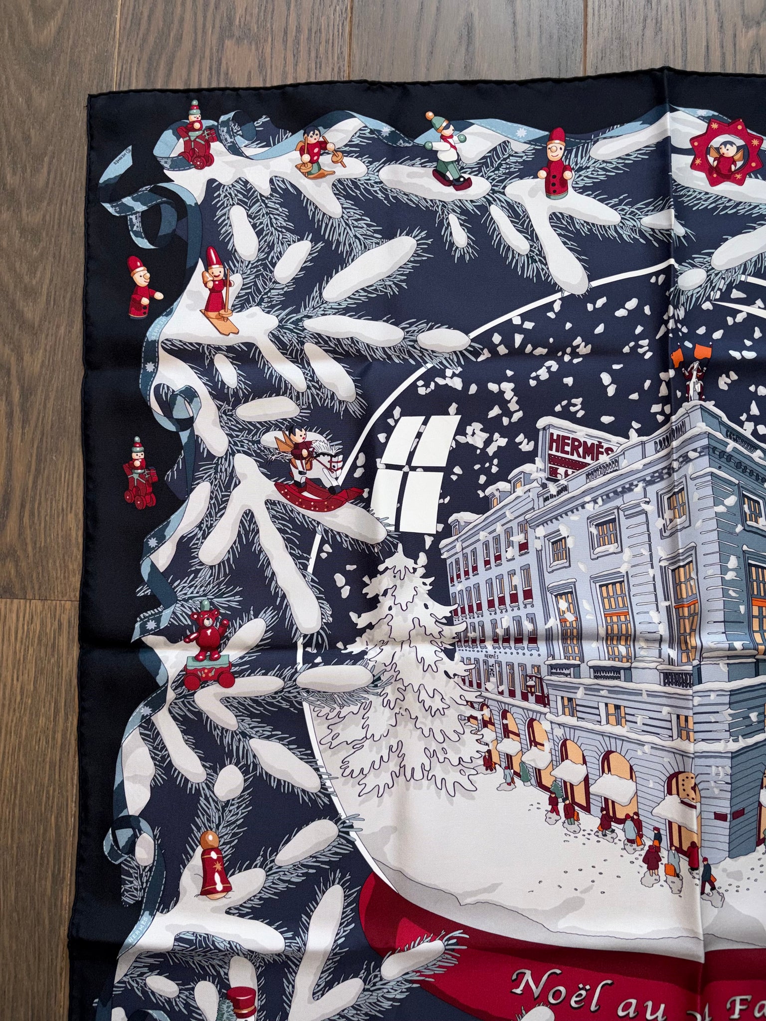 Beautiful and highly collectible HERMÈS Silk Scarf “Noël Au 24 Faubourg” by Dimitri Rybaltchenko.