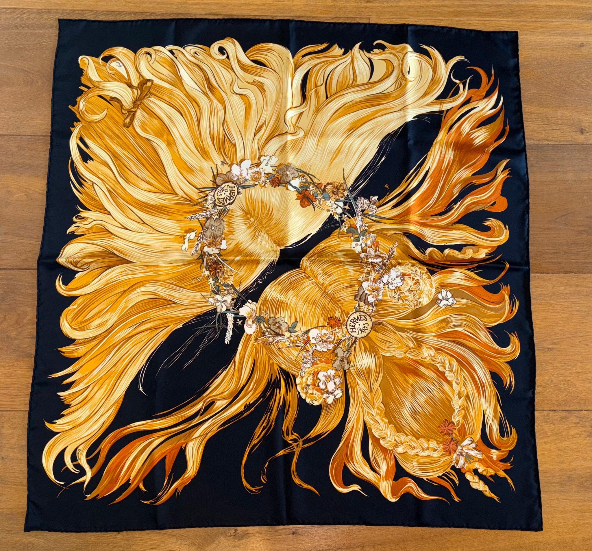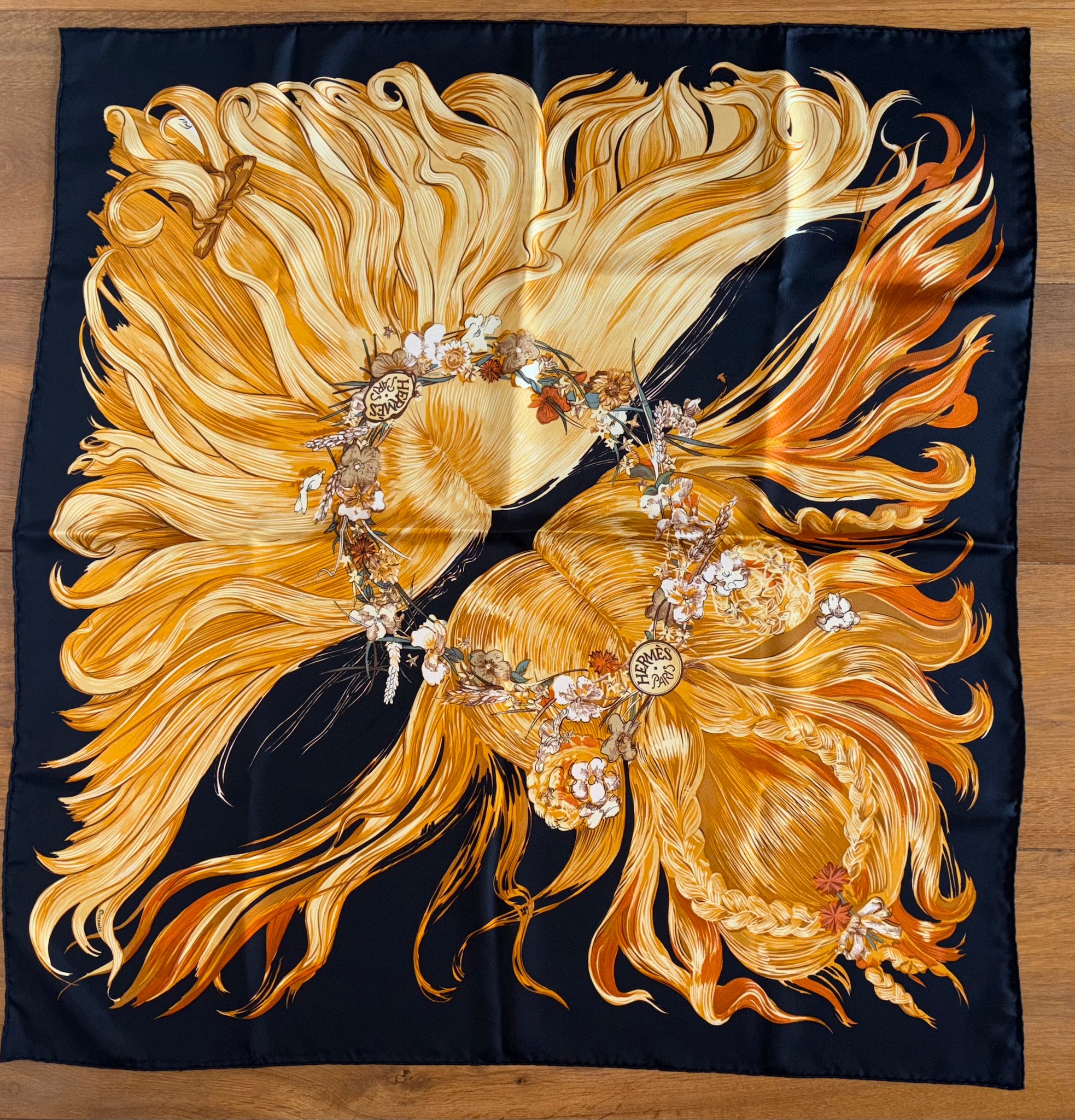 Beautiful Hermes Silk Twill Scarf “Eva” by Philippe Dumas.