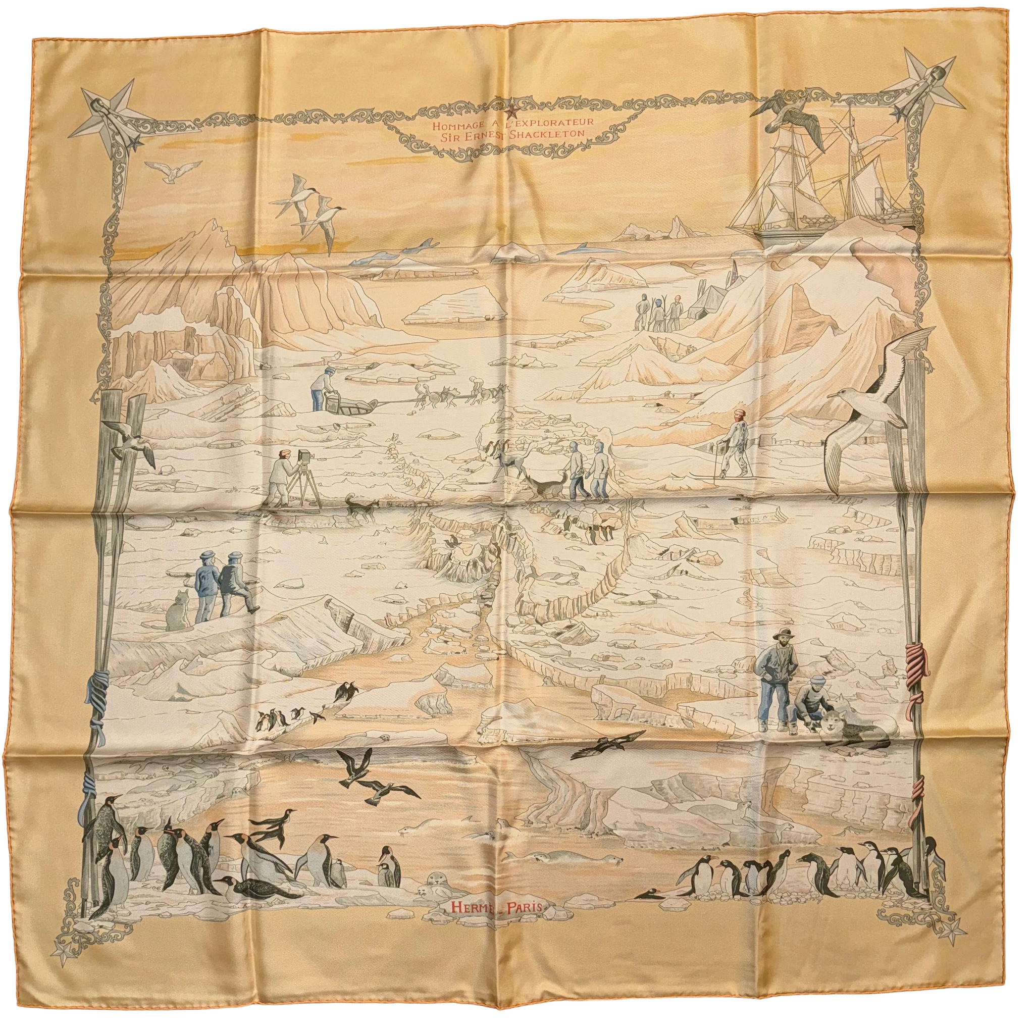 First issued in 2005. This scarf is a Special Issue Hermès carré published as a tribute to the British Antarctic explorer, Sir Ernest Henry Shackleton, a man whose life and legacy continue to inspire.