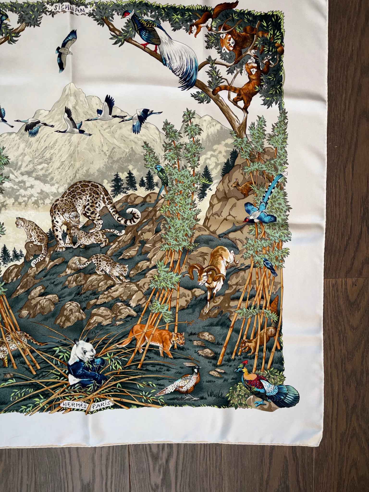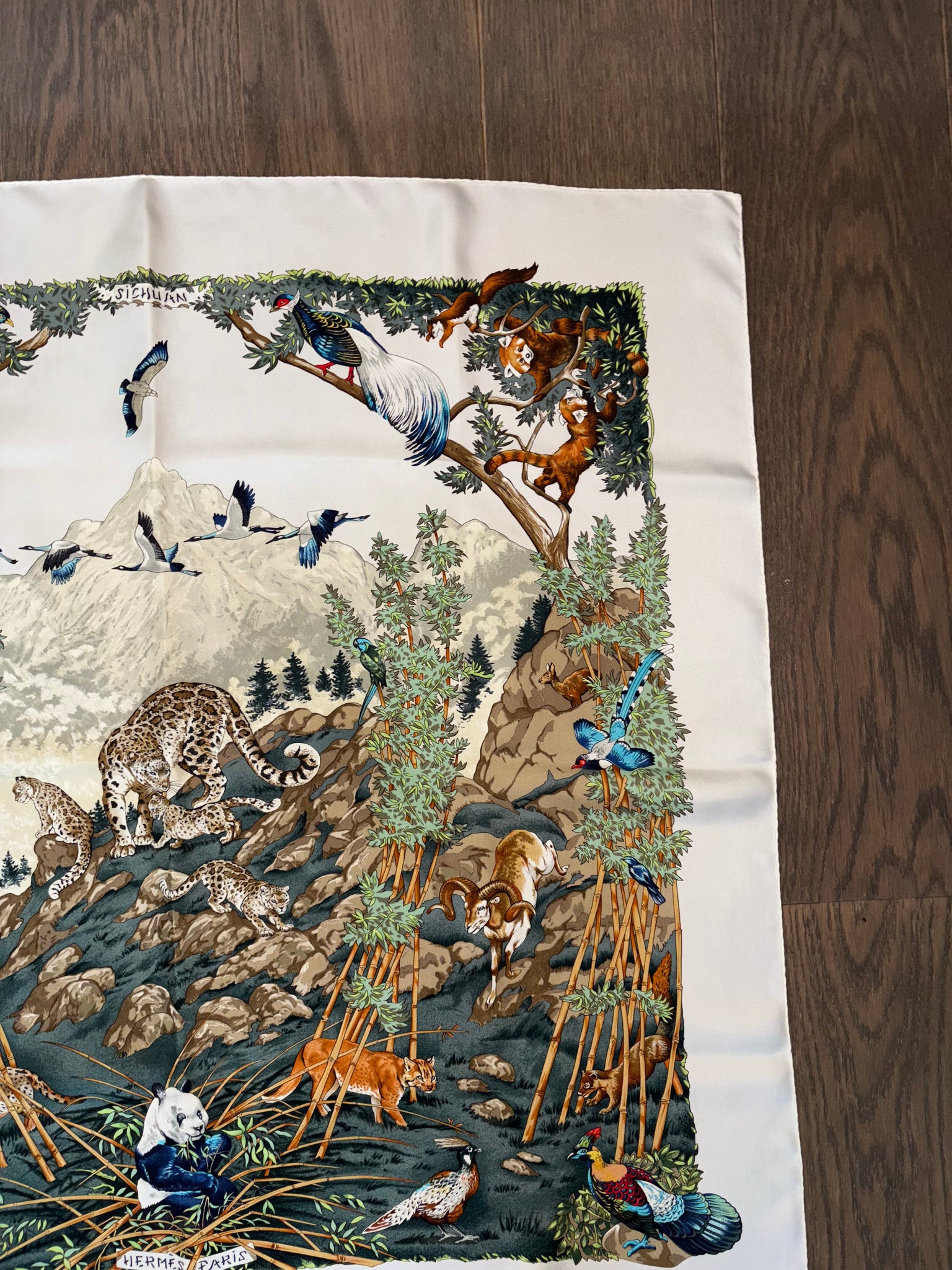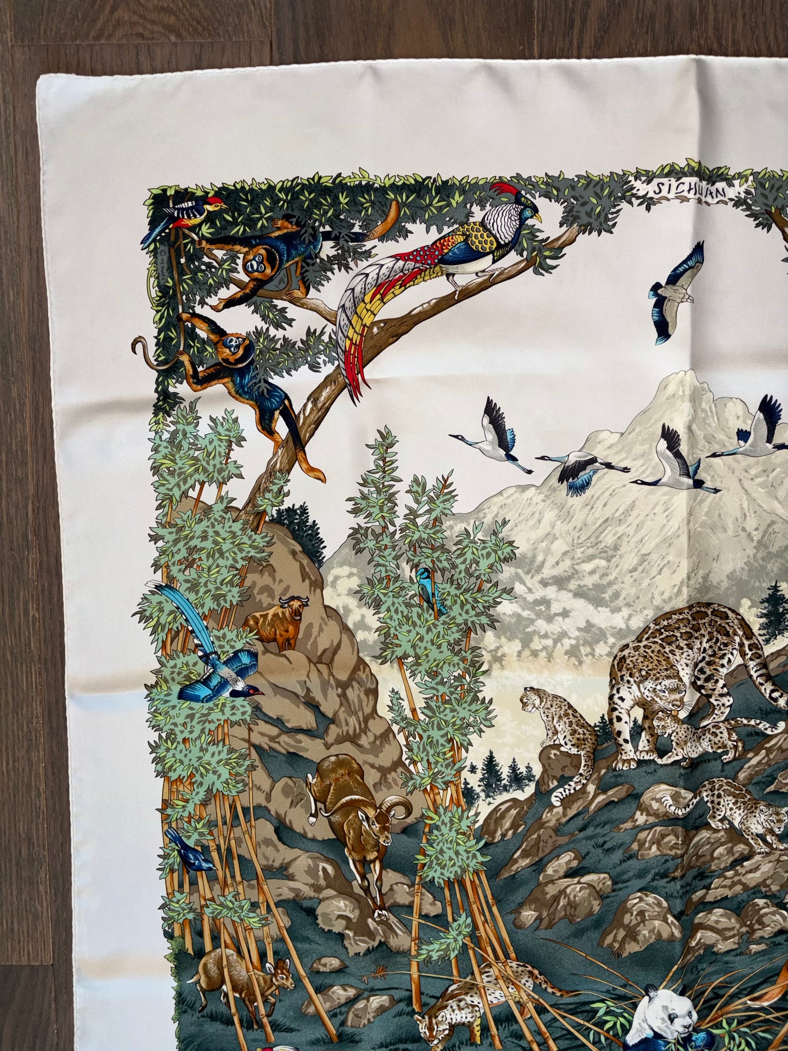 Very beautiful and rare Hermes Silk Twill Scarf “Sichuan” by Robert Dallet.
