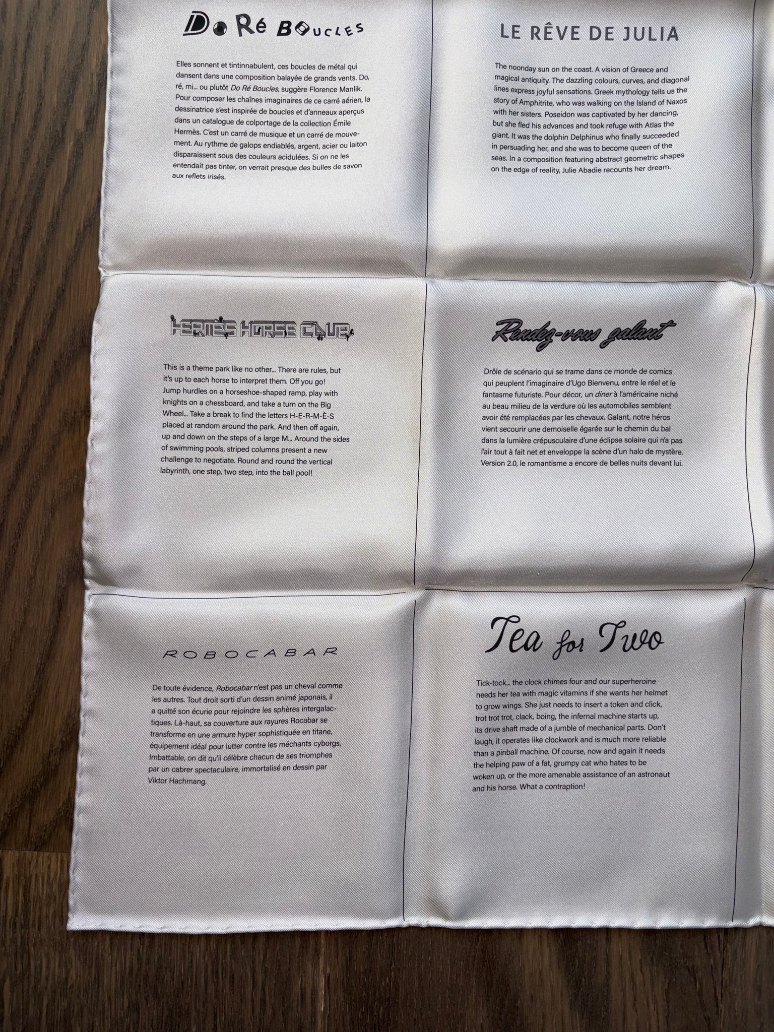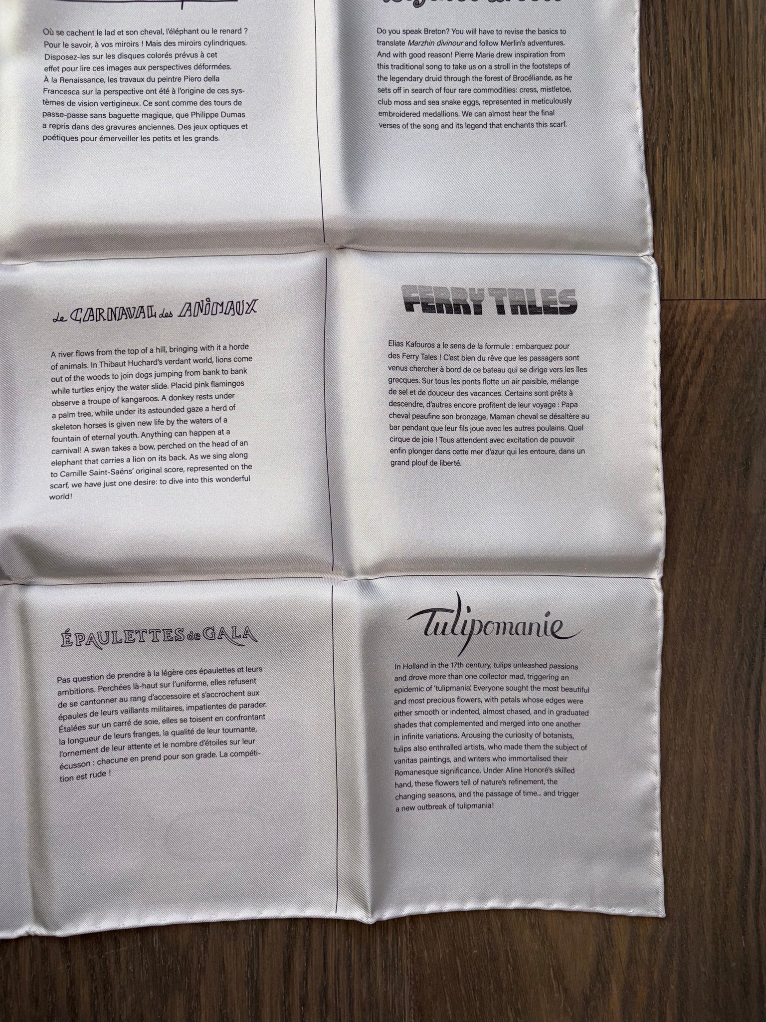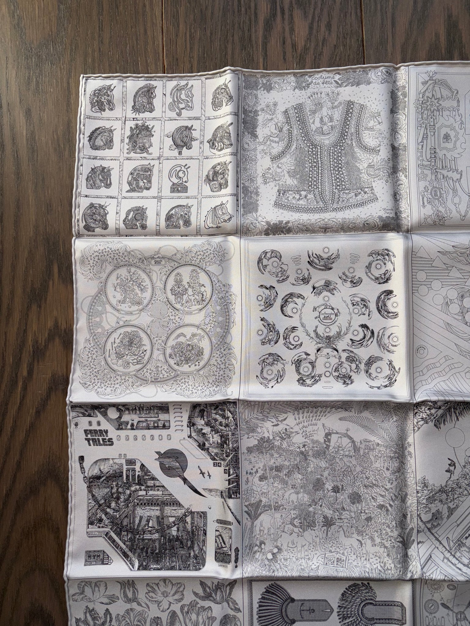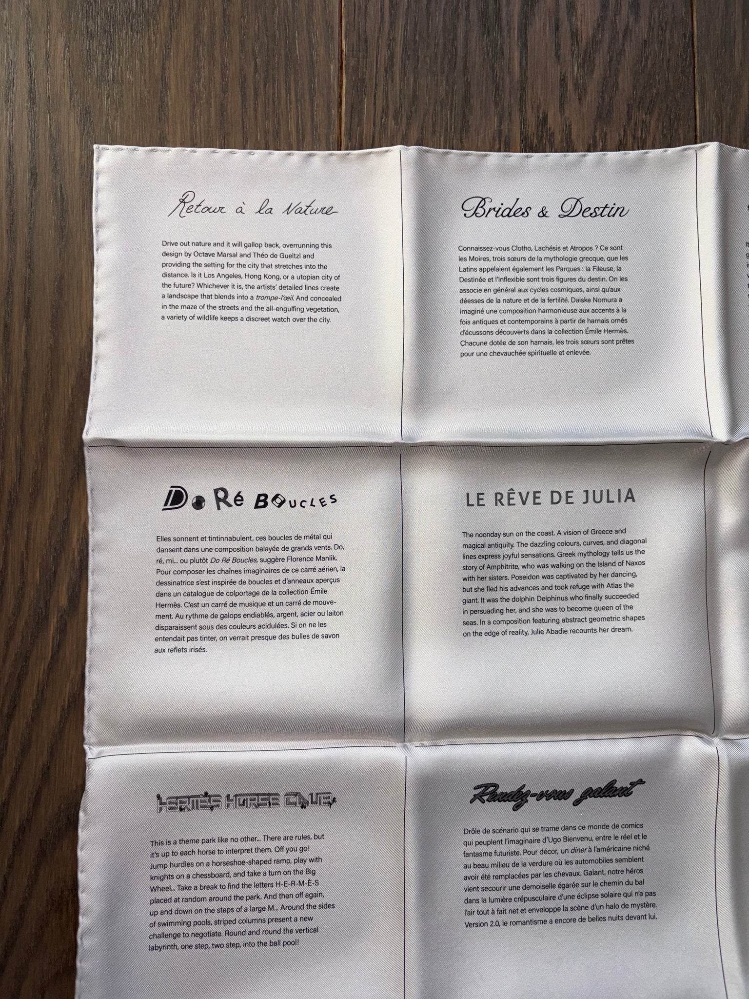Special VIP Hermes silk twill scarf “16 Carres Double Face” by various artists in Spring-Summer 2023 issue.