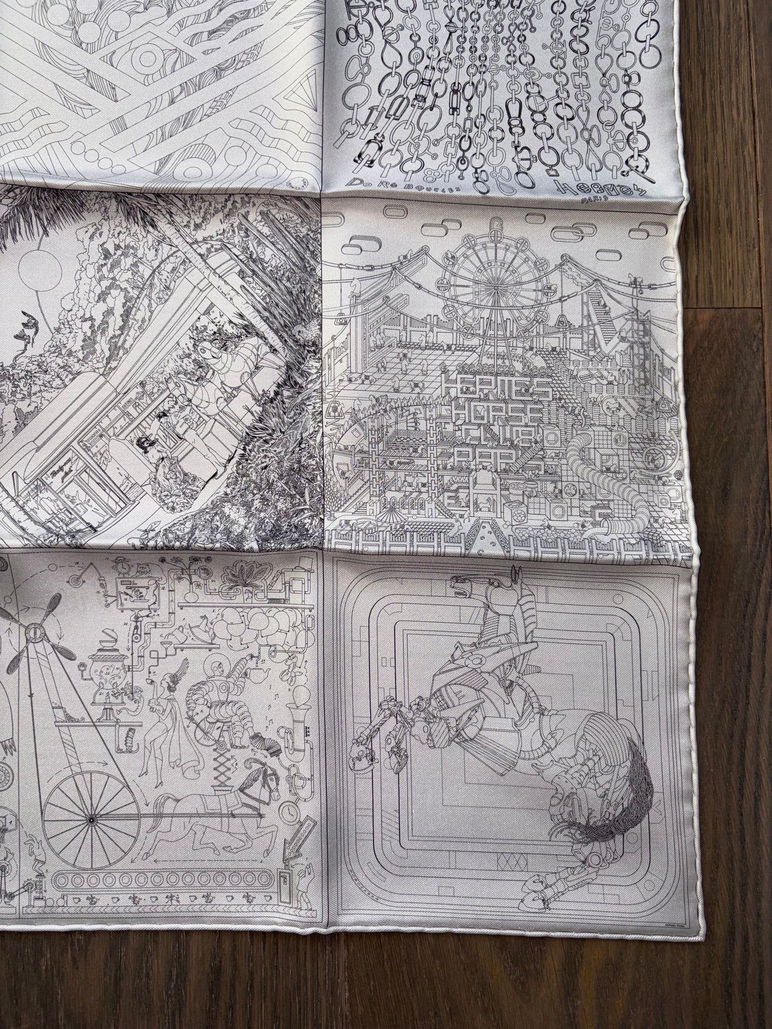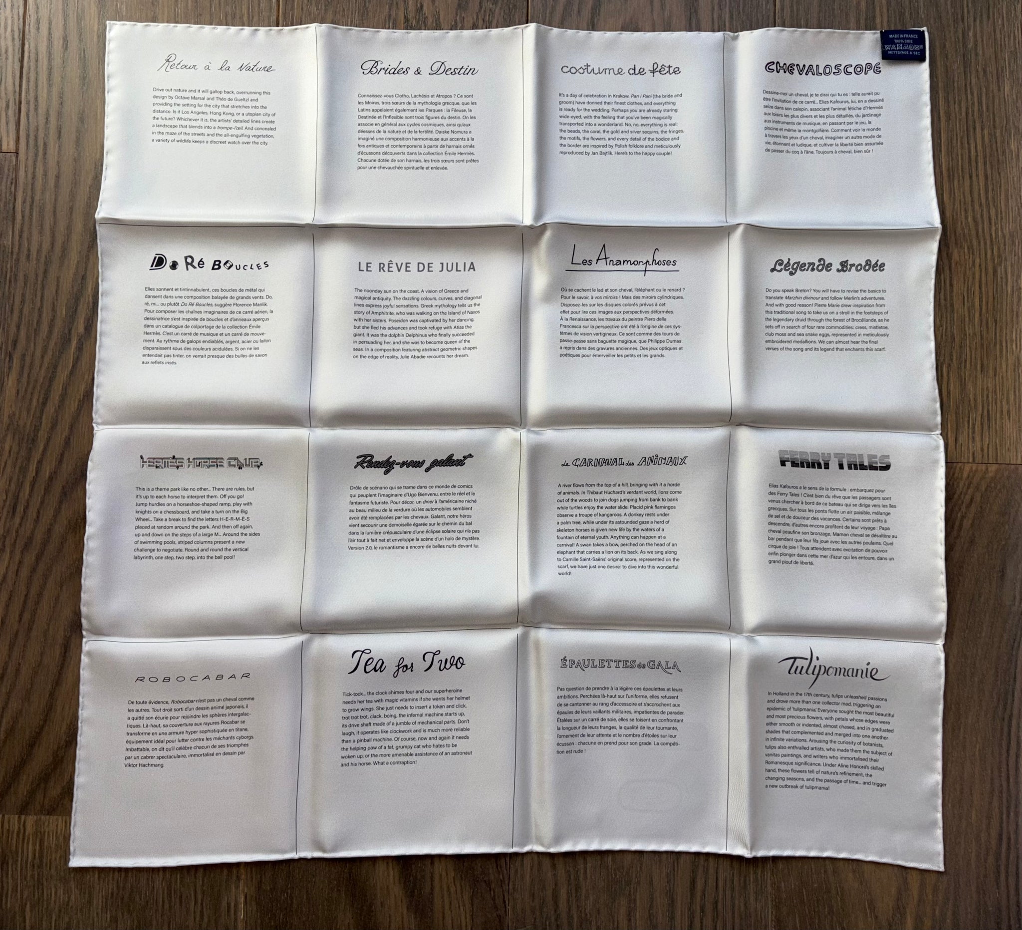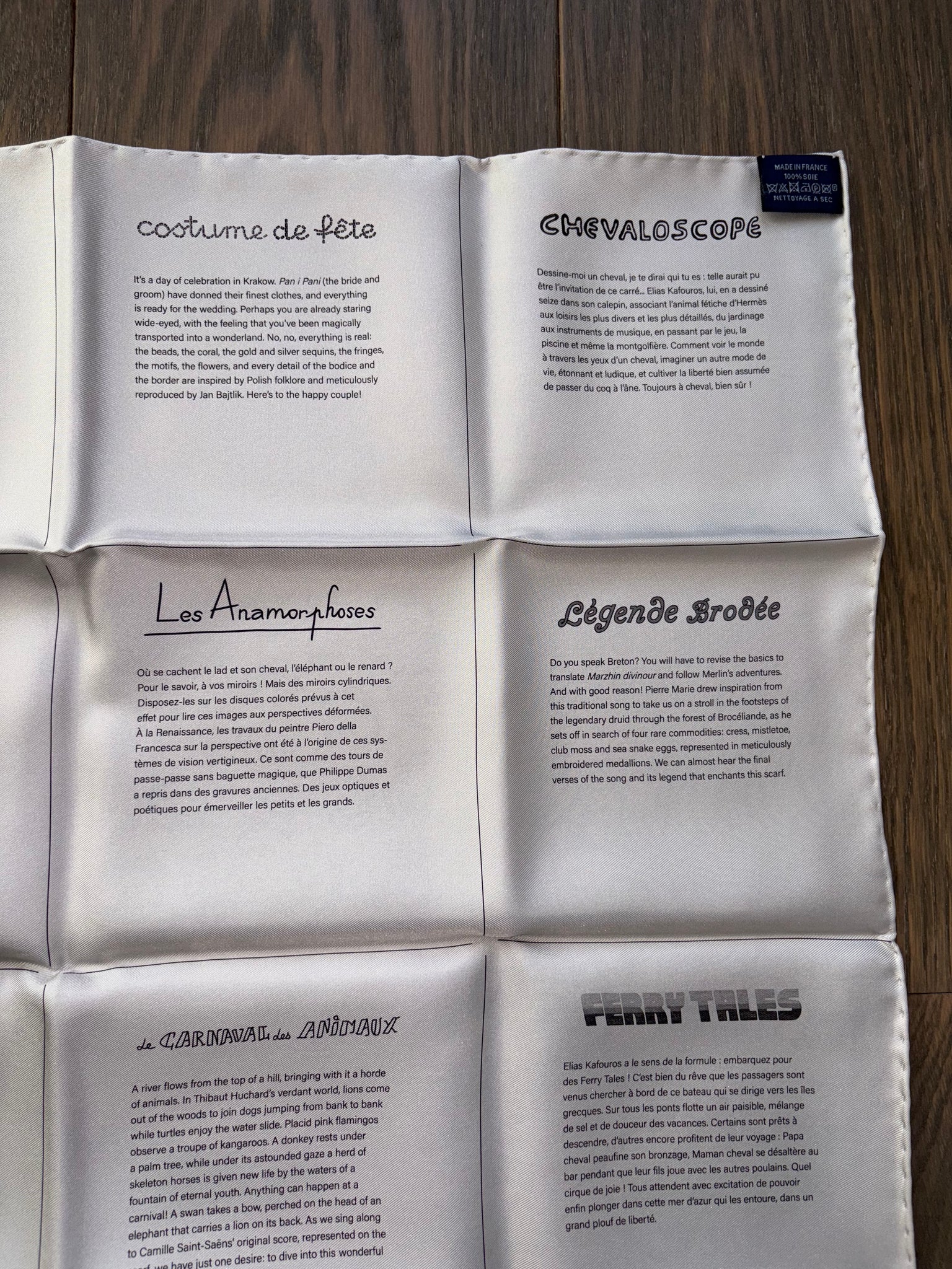 It was a gift to VIP clients to celebrate the launch of Spring/Summer 2023. It features every motif being released for the Spring/Summer 2023 season and it is the only 60cm Double Face. Very unique and highly collectible scarf. Comes in a special box with a leaflet.