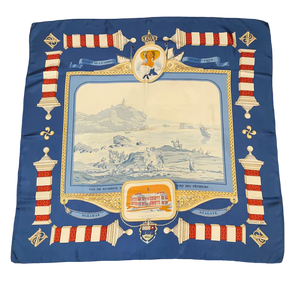 Hermes silk scarf "Rocher de la Vierge, Le Port, Vieux Villa Eugenia A Biarritz” by Hugo Grygkar
