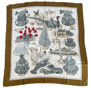 Limited edition Hermes Silk Scarf “Gastronomie” for Hennessy by Christiane Vauzelles et Robert Dumas.