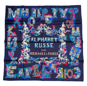 Hermes Silk Twill Scarf “Alphabet Russe" by Eugenia Miroshnichenko.  - Regular price
