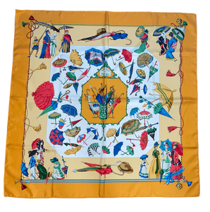 Limited edition Hermes Silk Twill Scarf “Ombrelles et Parapluies” for Citigroup Private Bank by Hubert de Watrigant.  - Regular price